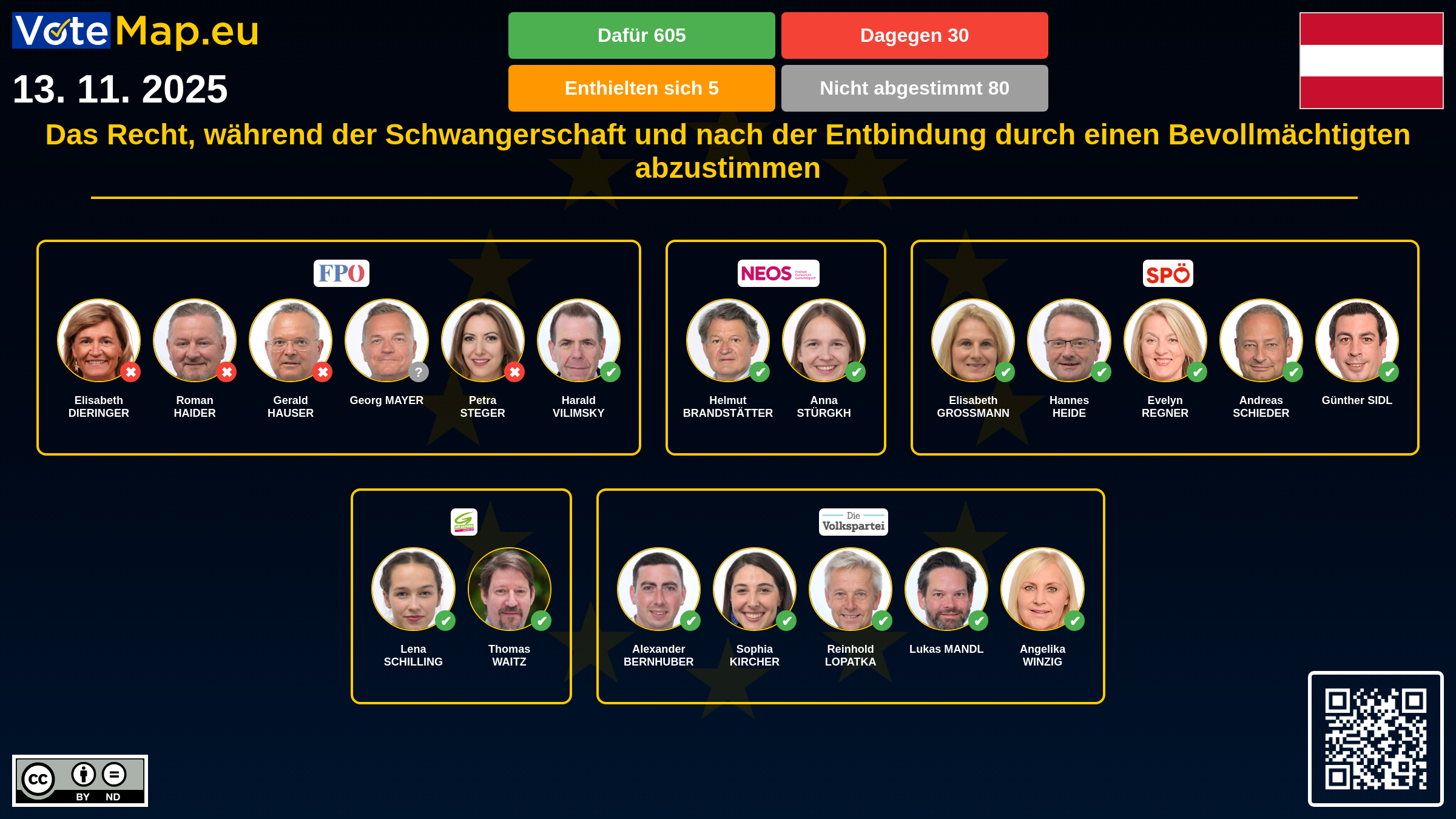 Damit soll ein seit langem bestehendes Problem gelöst werden: Bislang konnten weibliche Abgeordnete während der Schwangerschaft oder kurz nach der Geburt nicht abstimmen, was in der Praxis dazu führte, dass ihre Wähler nicht vertreten waren. Der Vorschlag soll verhindern, dass die Frauen zwischen ihrer persönlichen Gesundheit und der Ausübung ihres Mandats wählen müssen.