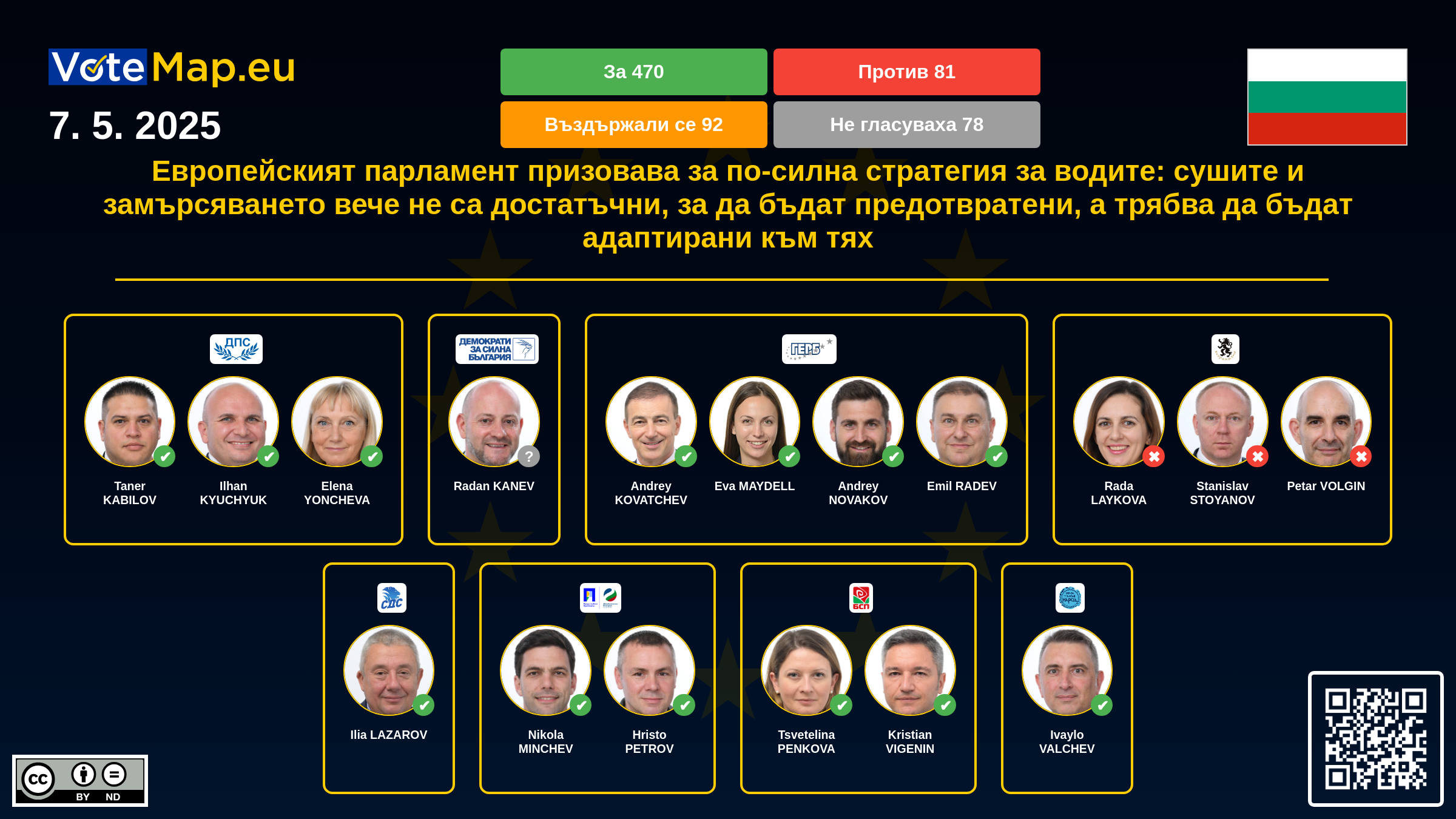 We collect and visually present data publicly available at the page of European Parliament. Votemap.eu denies any responsibility for possible inconsistencies of the data or its changes after the publication.