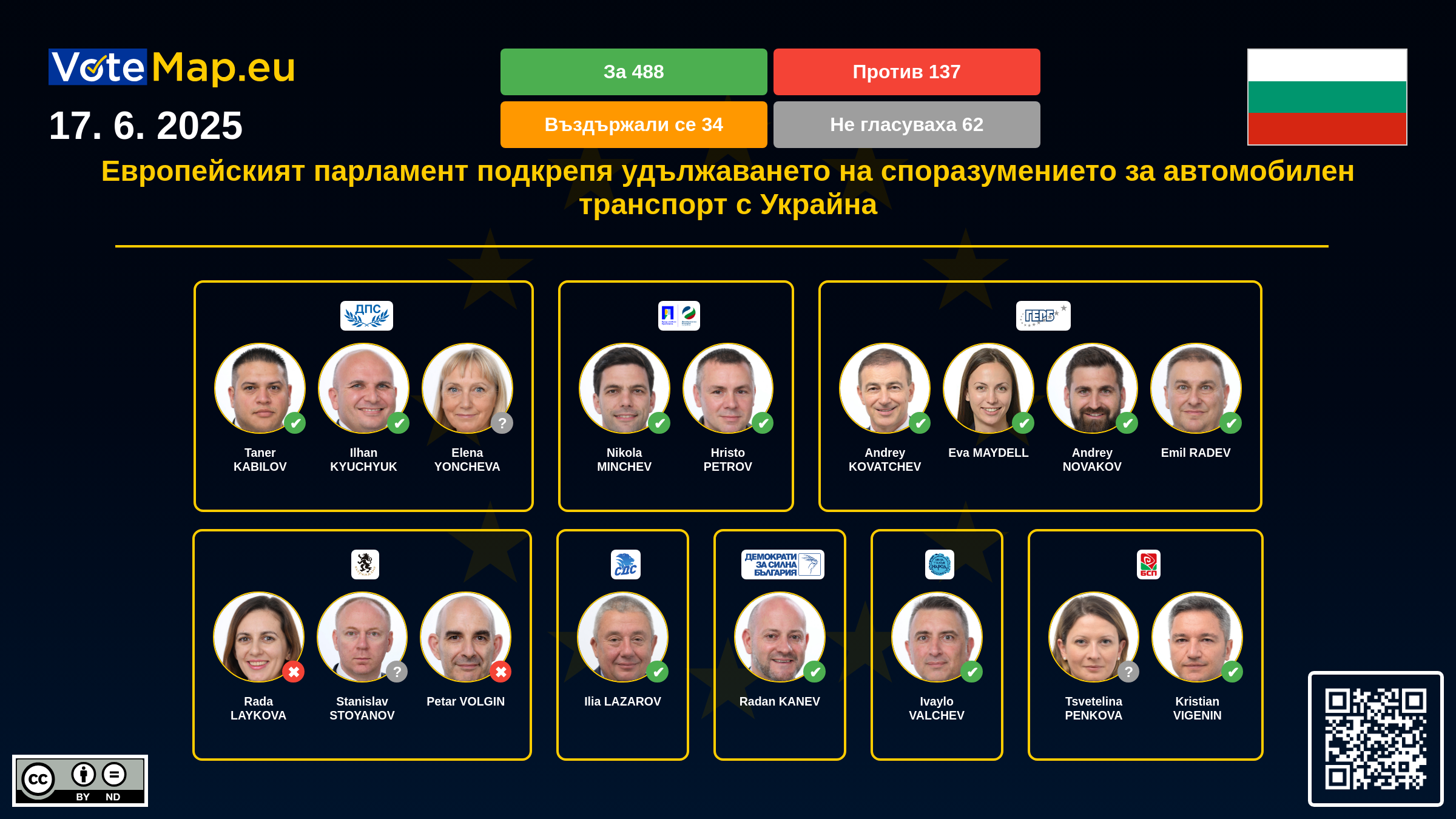 We collect and visually present data publicly available at the page of European Parliament. Votemap.eu denies any responsibility for possible inconsistencies of the data or its changes after the publication.