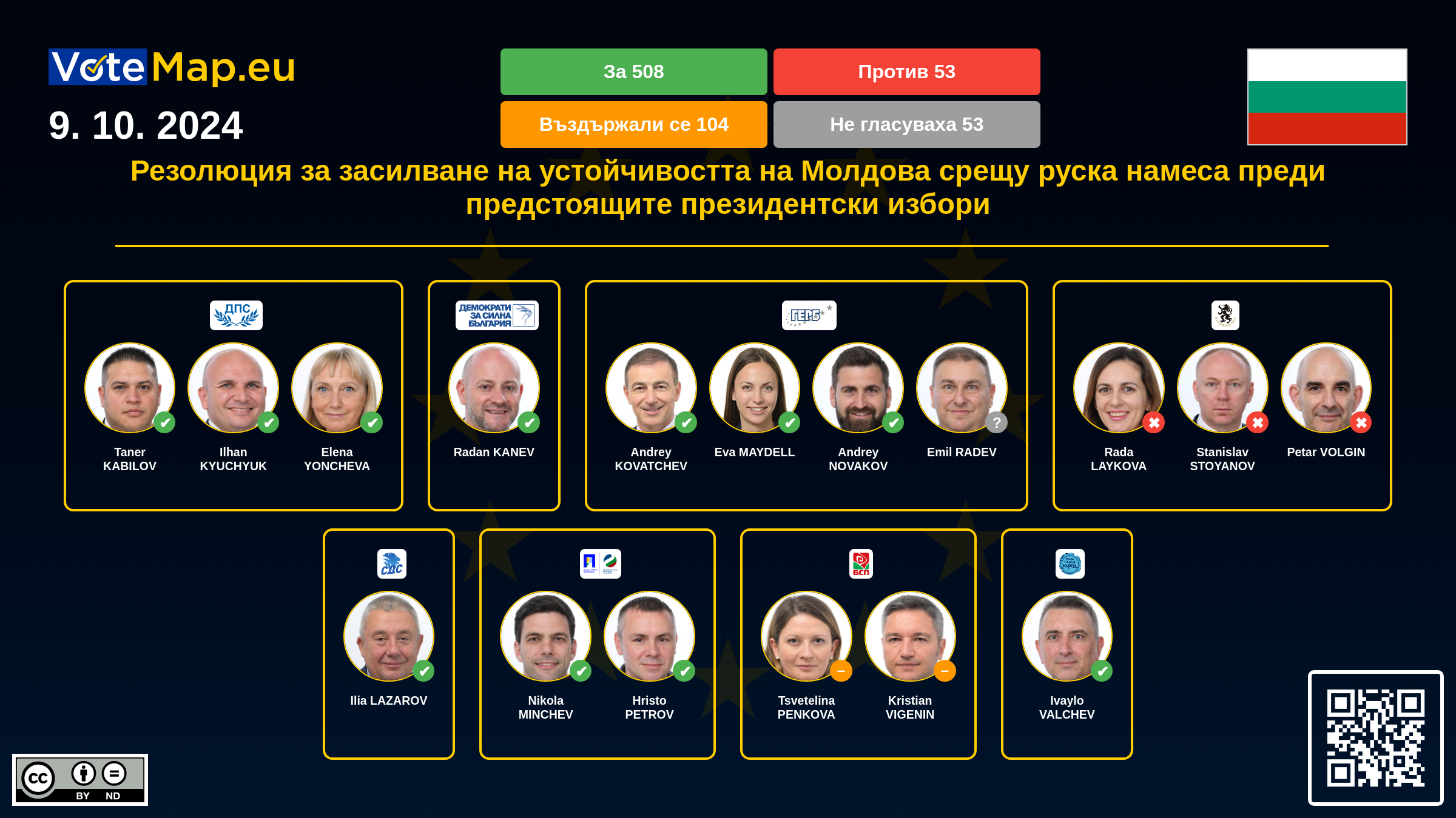 We collect and visually present data publicly available at the page of European Parliament. Votemap.eu denies any responsibility for possible inconsistencies of the data or its changes after the publication.