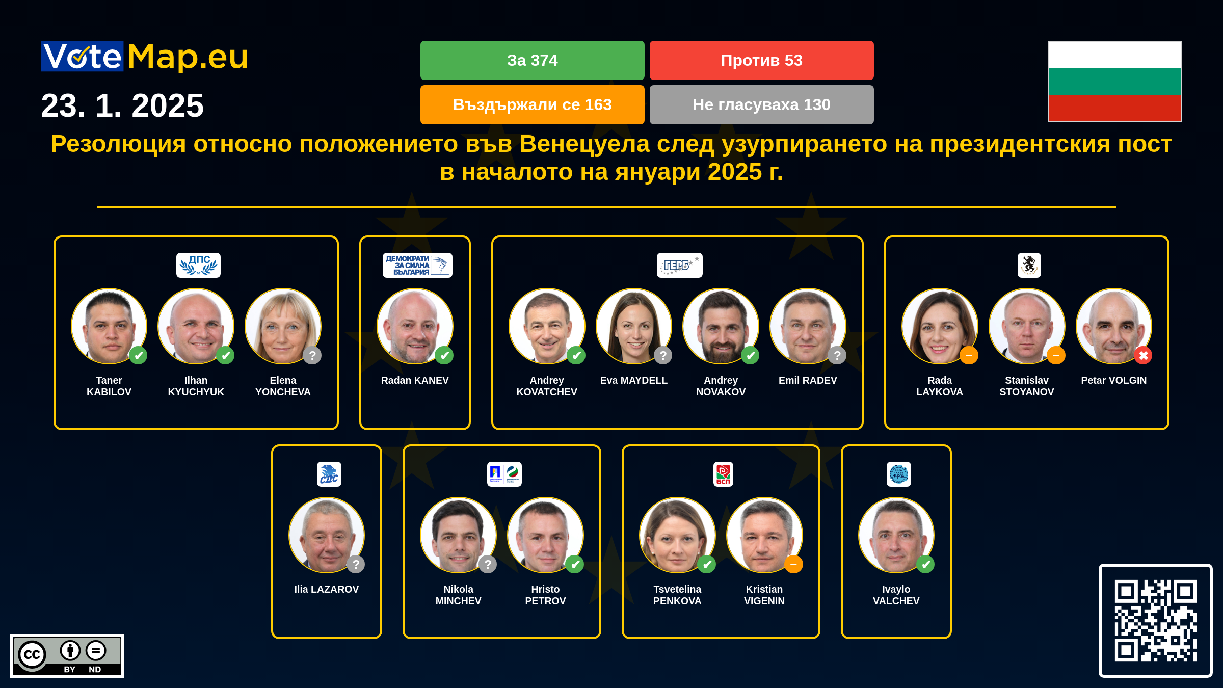 We collect and visually present data publicly available at the page of European Parliament. Votemap.eu denies any responsibility for possible inconsistencies of the data or its changes after the publication.