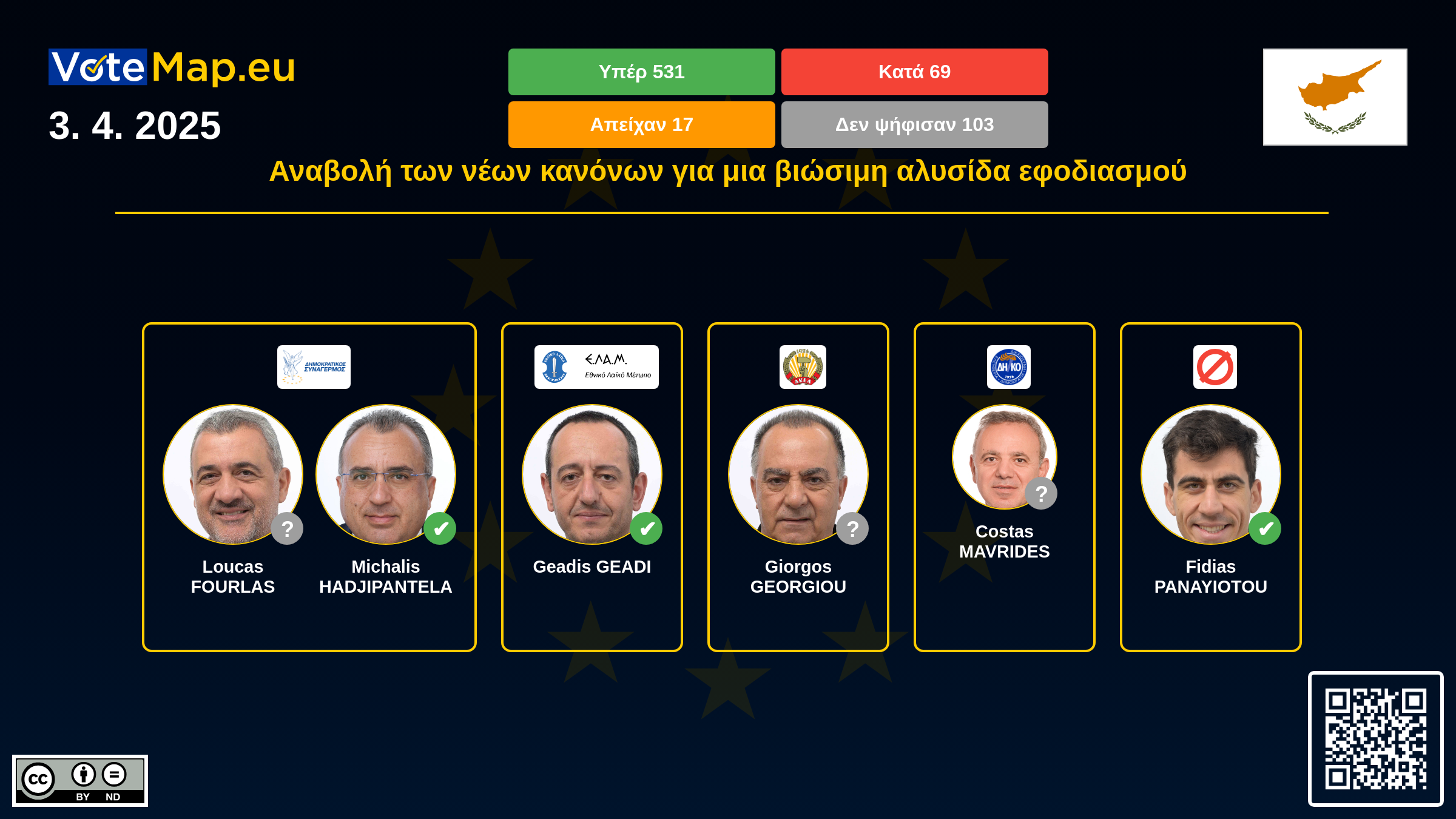 We collect and visually present data publicly available at the page of European Parliament. Votemap.eu denies any responsibility for possible inconsistencies of the data or its changes after the publication.