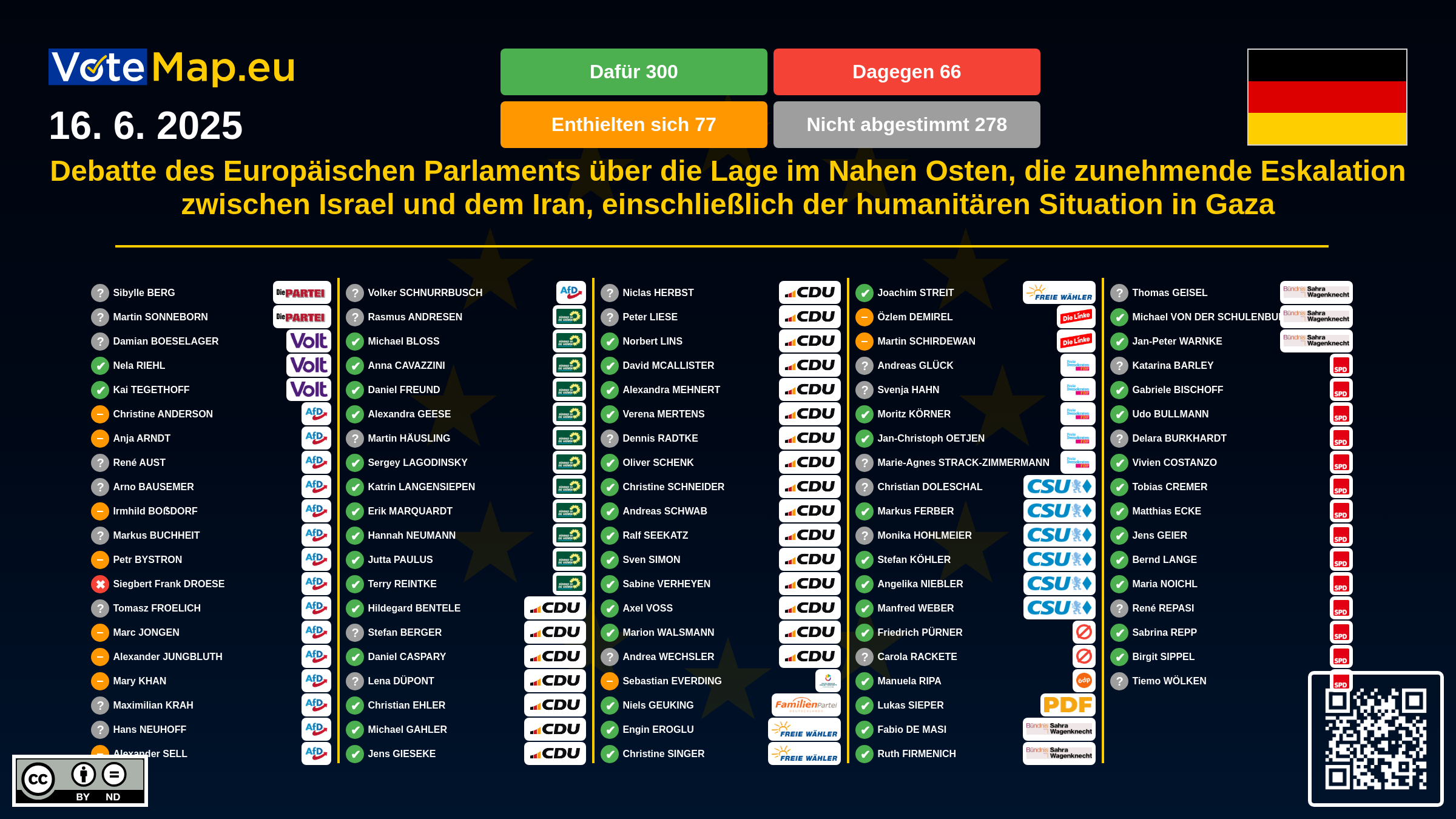 We collect and visually present data publicly available at the page of European Parliament. Votemap.eu denies any responsibility for possible inconsistencies of the data or its changes after the publication.