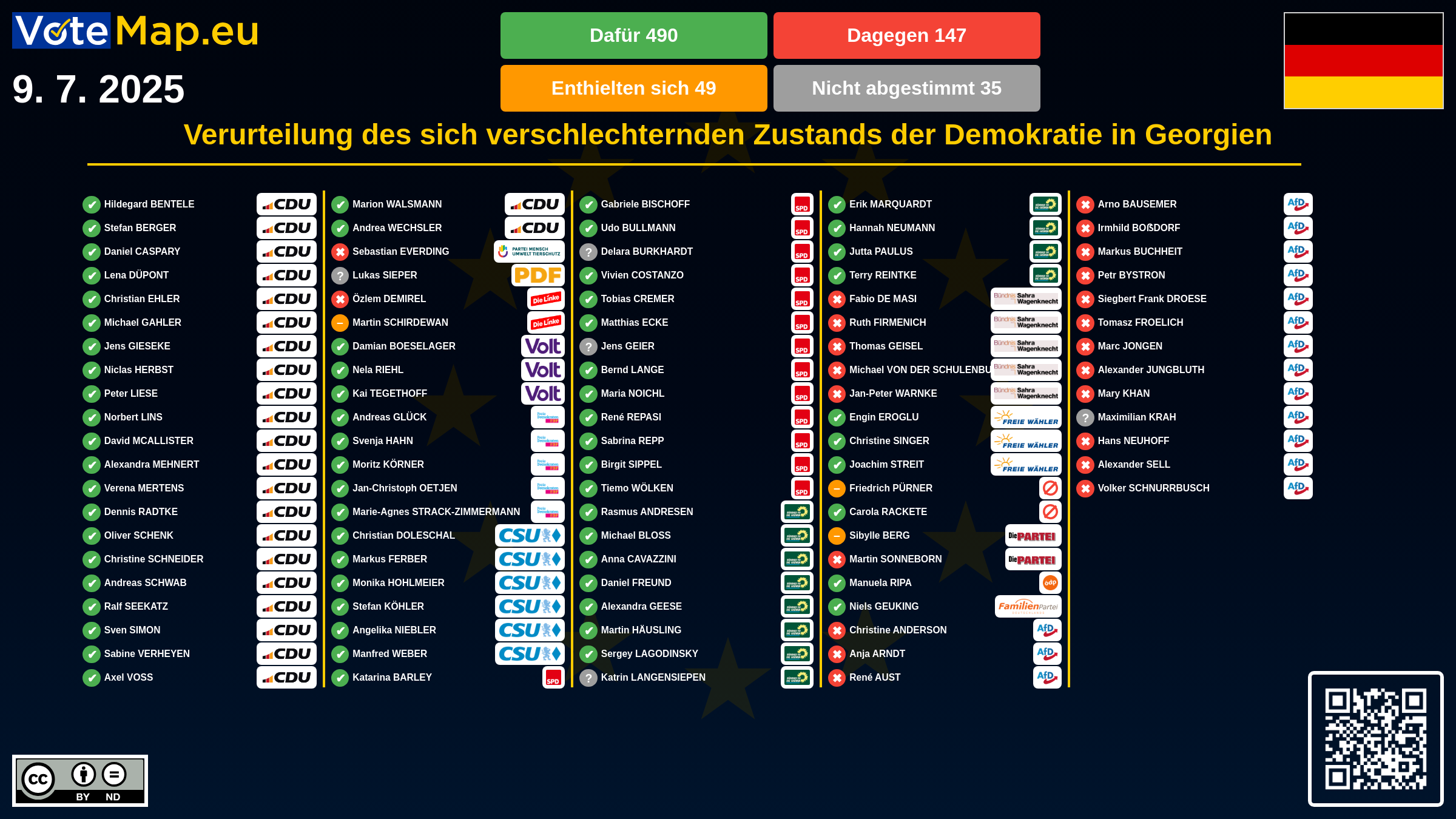 We collect and visually present data publicly available at the page of European Parliament. Votemap.eu denies any responsibility for possible inconsistencies of the data or its changes after the publication.