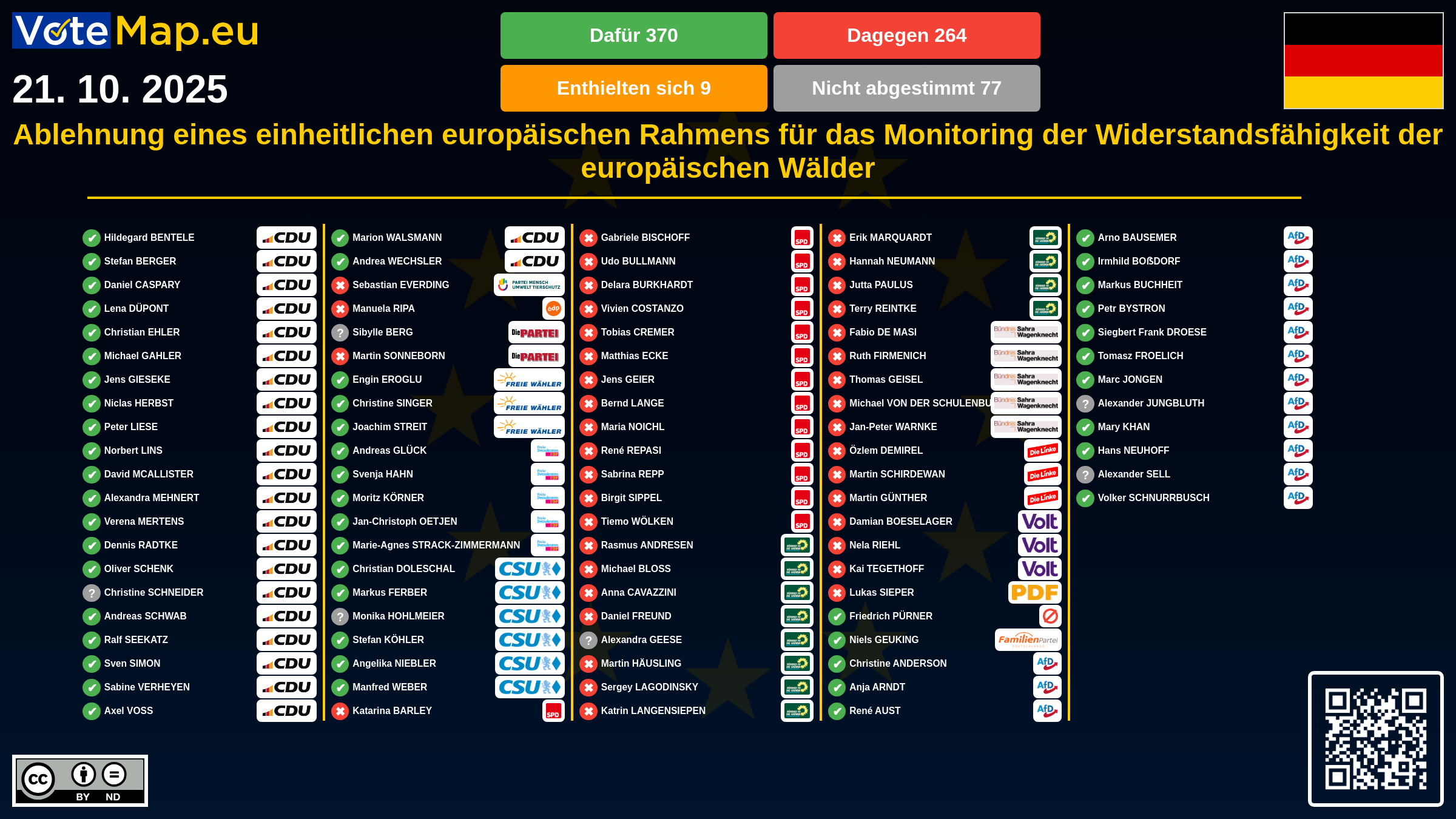 Mit der Ablehnung des Vorschlags beendeten die Abgeordneten die erste Lesung und der Vorschlag befindet sich nun in dieser Phase des Gesetzgebungsverfahrens. Die Kommission wollte ein Gesetz zum Waldmonitoring schaffen, um die Datenerhebung über den Zustand der Wälder in der EU zu harmonisieren und die Widerstandsfähigkeit der europäischen Wälder gegen Dürre, Schädlinge und Brände zu stärken.