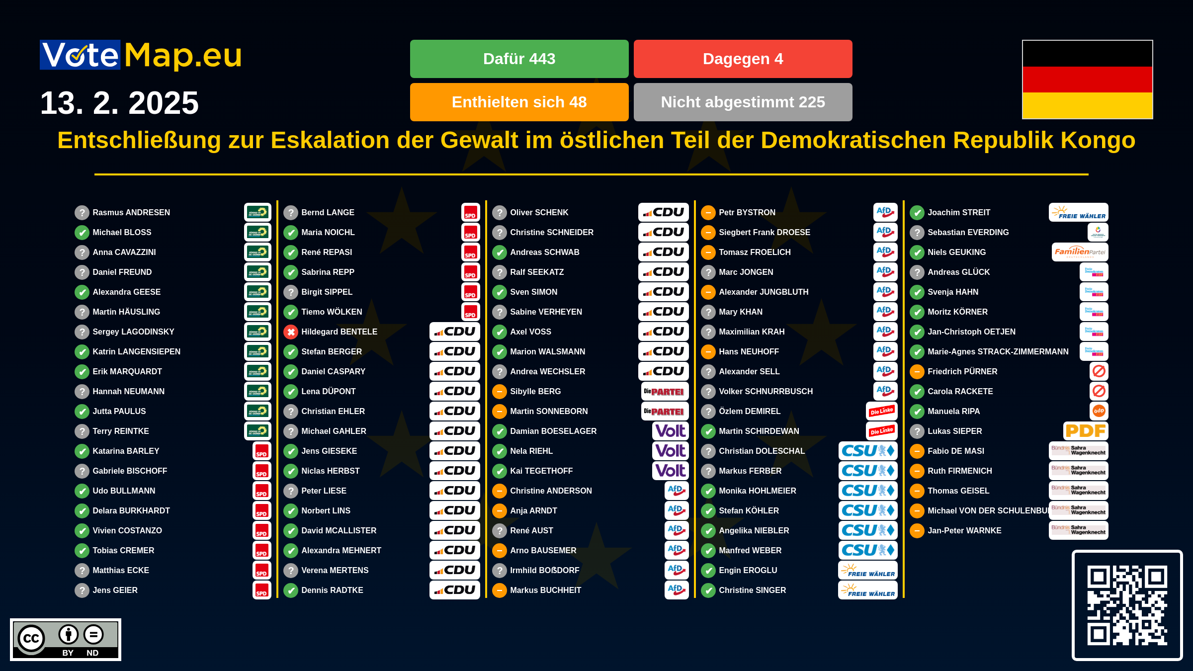 We collect and visually present data publicly available at the page of European Parliament. Votemap.eu denies any responsibility for possible inconsistencies of the data or its changes after the publication.