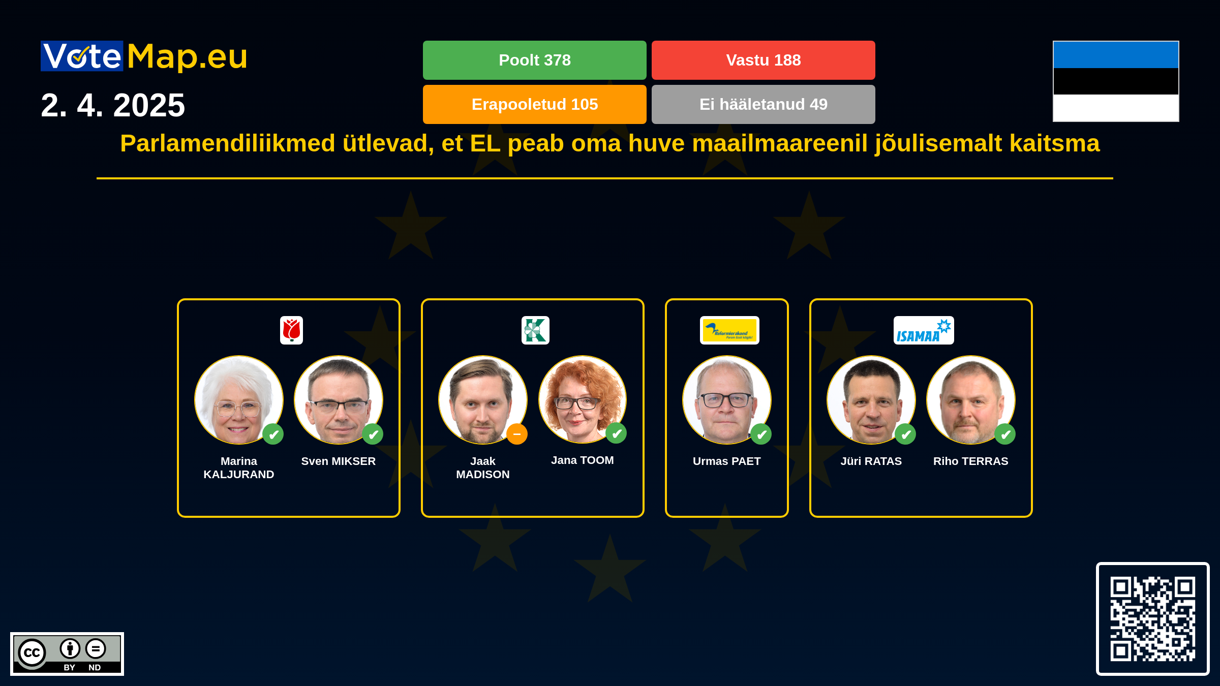 We collect and visually present data publicly available at the page of European Parliament. Votemap.eu denies any responsibility for possible inconsistencies of the data or its changes after the publication.