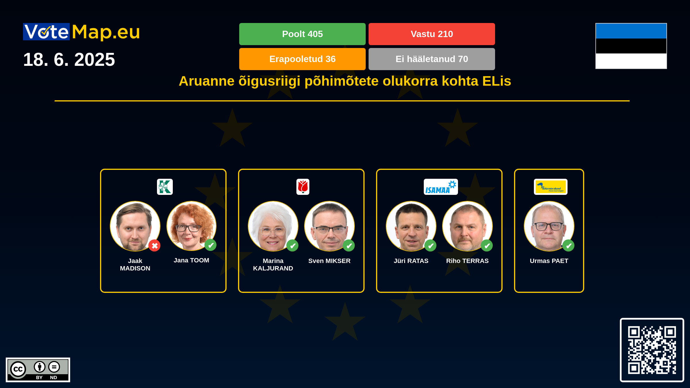 We collect and visually present data publicly available at the page of European Parliament. Votemap.eu denies any responsibility for possible inconsistencies of the data or its changes after the publication.