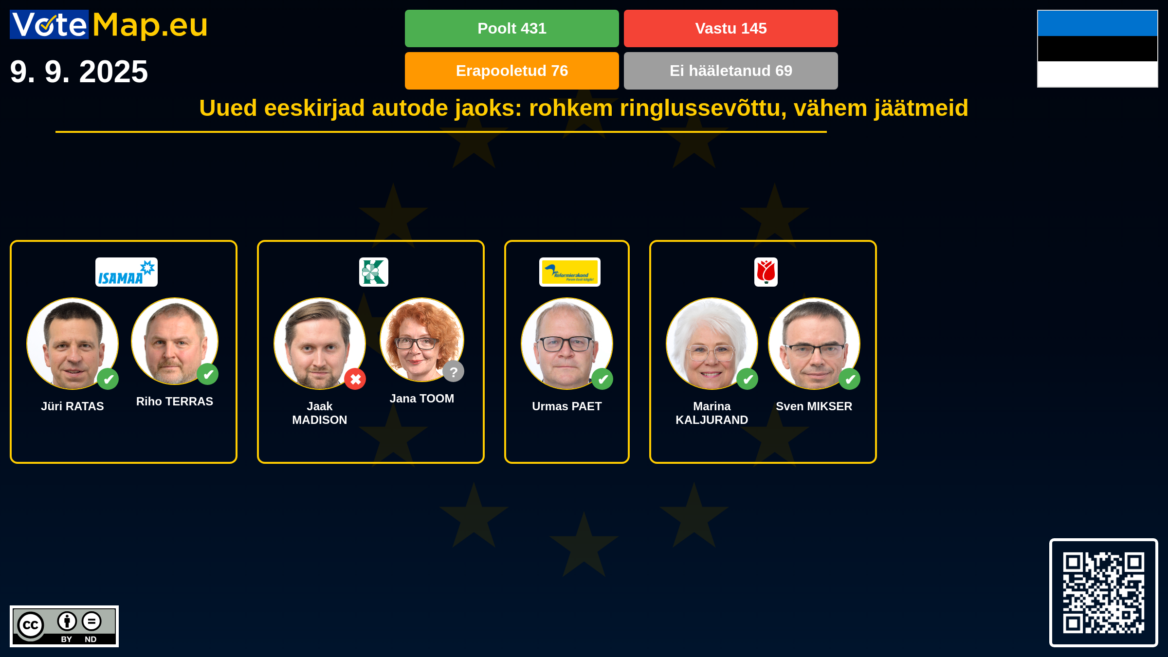 We collect and visually present data publicly available at the page of European Parliament. Votemap.eu denies any responsibility for possible inconsistencies of the data or its changes after the publication.