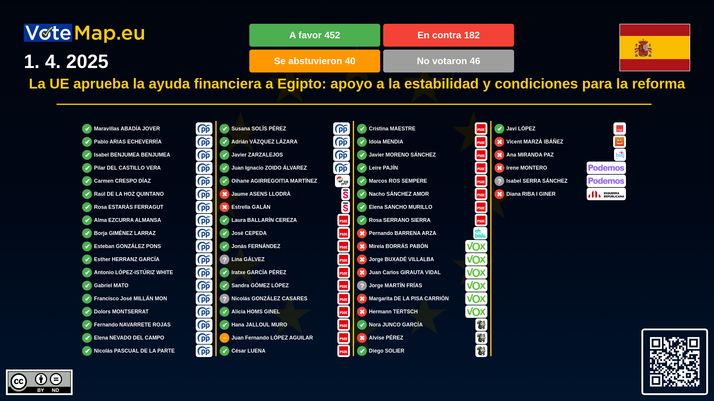 La ayuda se desembolsará en tres tramos a lo largo de tres años, cada uno de ellos supeditado a la realización de reformas económicas, la reducción de la deuda y una gestión más transparente. Los eurodiputados también subrayaron que el respeto de los derechos humanos es clave: si Egipto no cumple los requisitos acordados, podrían suspenderse nuevos pagos.