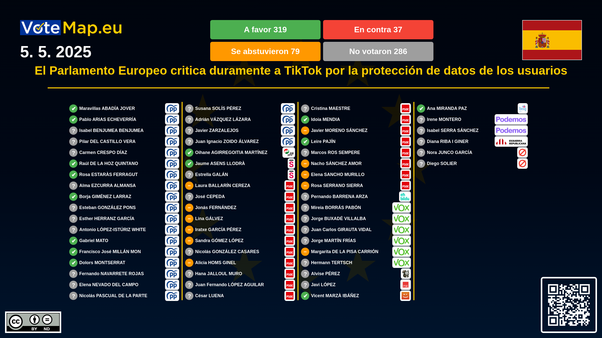 We collect and visually present data publicly available at the page of European Parliament. Votemap.eu denies any responsibility for possible inconsistencies of the data or its changes after the publication.