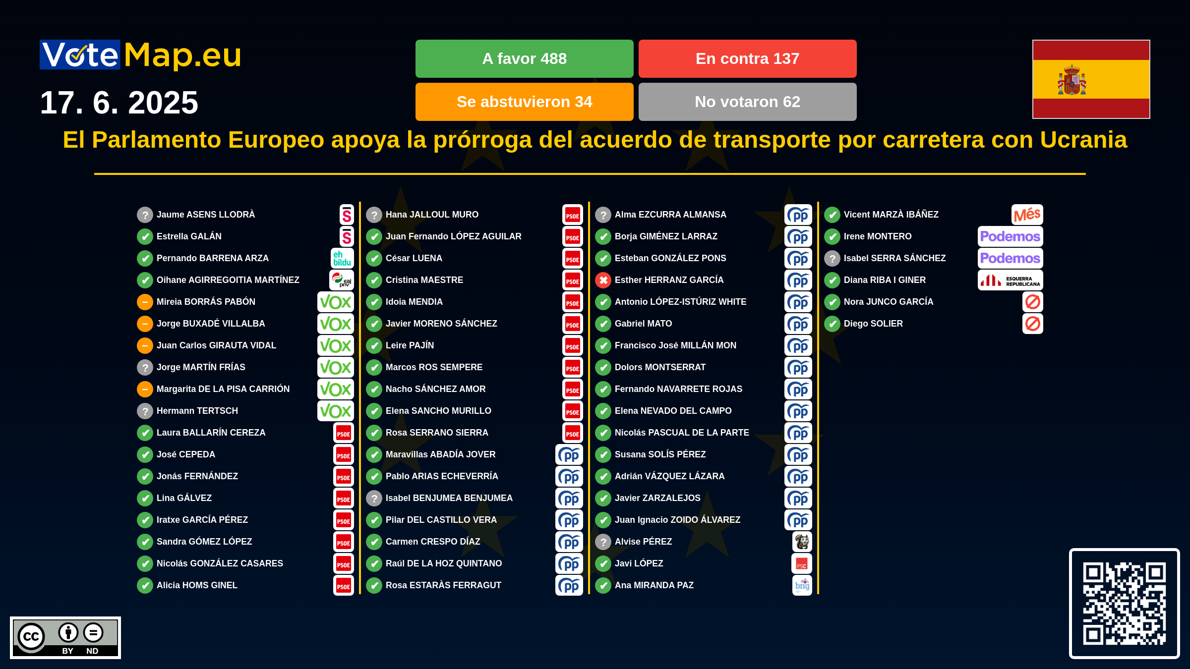 We collect and visually present data publicly available at the page of European Parliament. Votemap.eu denies any responsibility for possible inconsistencies of the data or its changes after the publication.