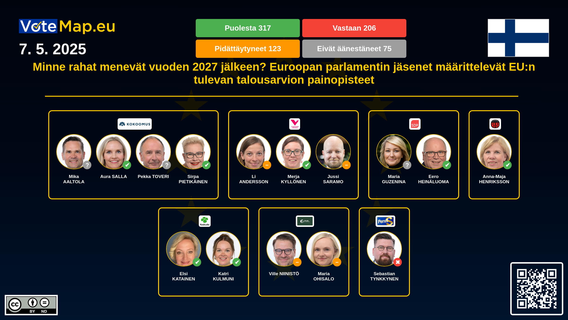 We collect and visually present data publicly available at the page of European Parliament. Votemap.eu denies any responsibility for possible inconsistencies of the data or its changes after the publication.