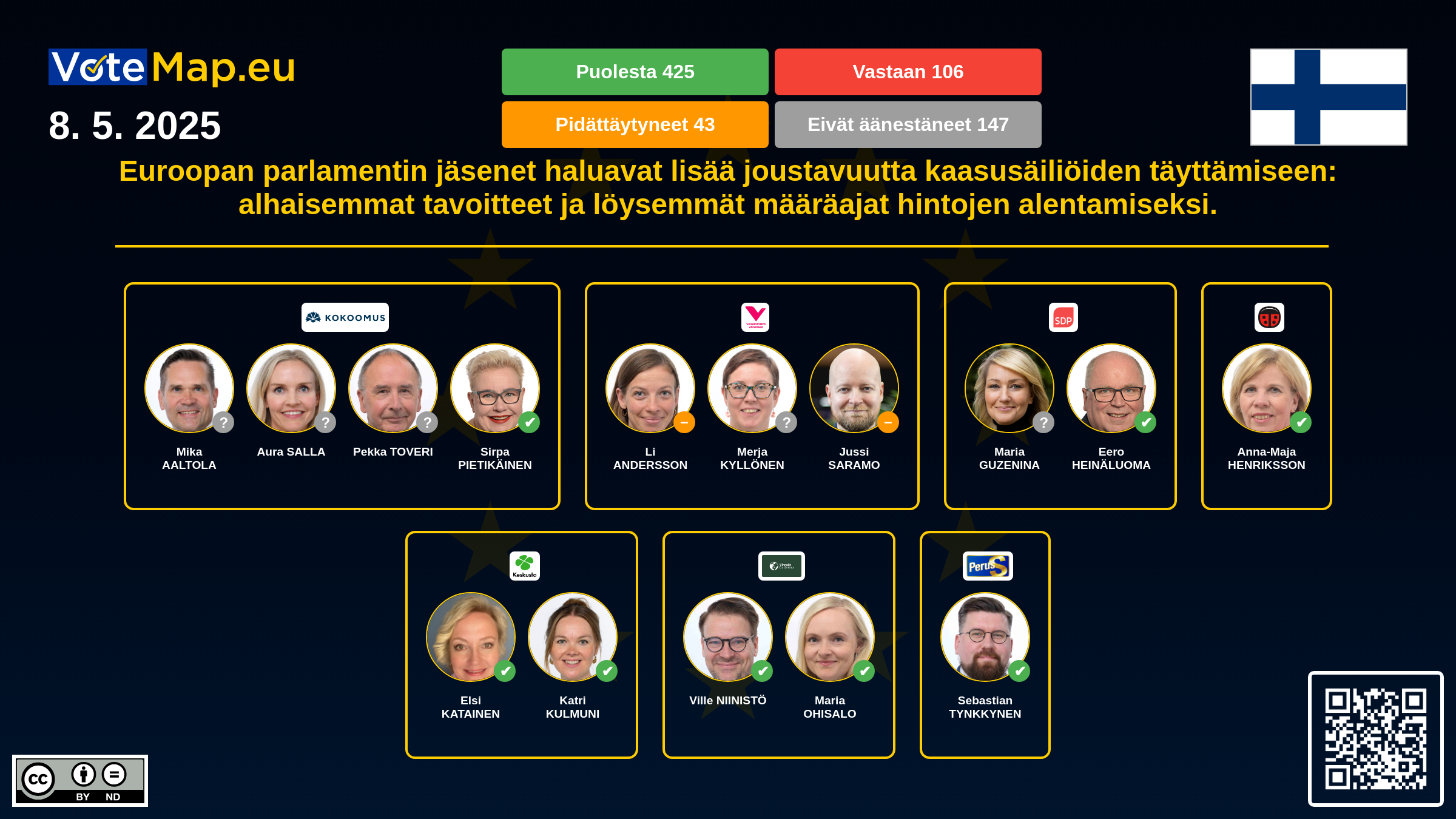 We collect and visually present data publicly available at the page of European Parliament. Votemap.eu denies any responsibility for possible inconsistencies of the data or its changes after the publication.