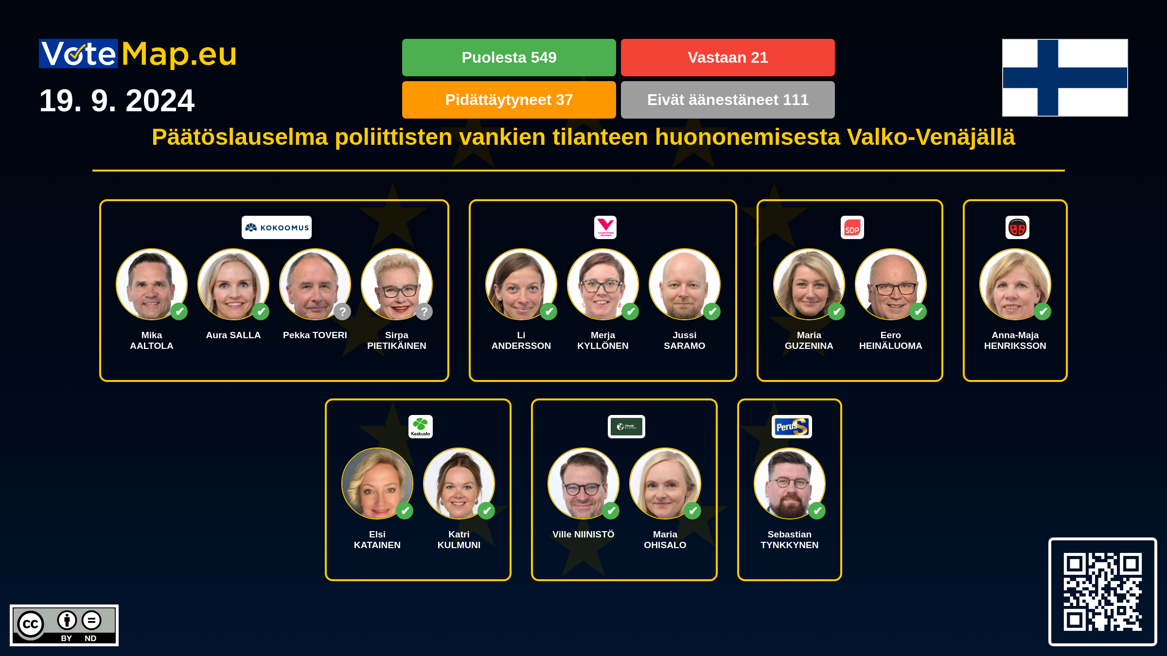 We collect and visually present data publicly available at the page of European Parliament. Votemap.eu denies any responsibility for possible inconsistencies of the data or its changes after the publication.