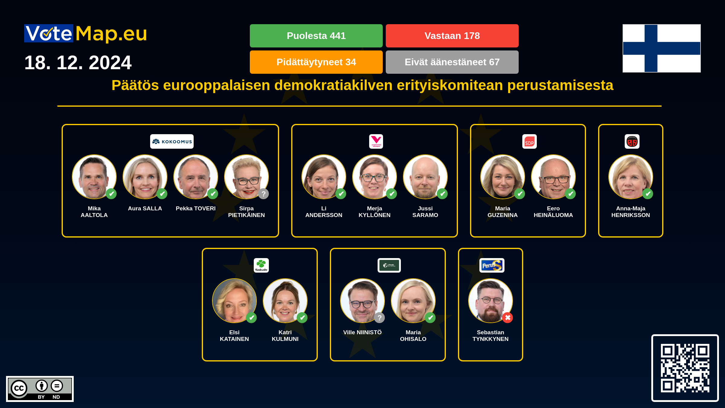 We collect and visually present data publicly available at the page of European Parliament. Votemap.eu denies any responsibility for possible inconsistencies of the data or its changes after the publication.