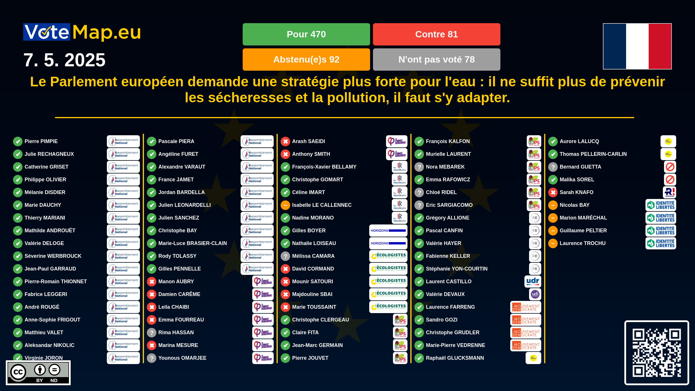 We collect and visually present data publicly available at the page of European Parliament. Votemap.eu denies any responsibility for possible inconsistencies of the data or its changes after the publication.