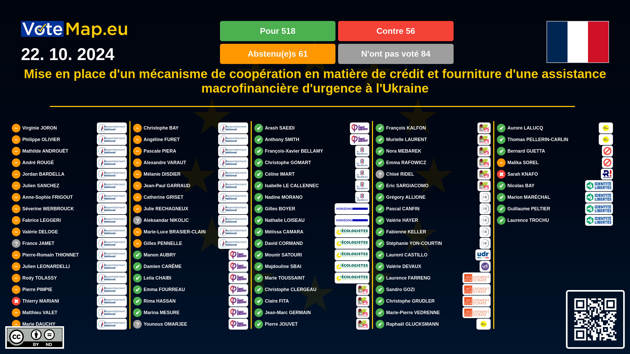 We collect and visually present data publicly available at the page of European Parliament. Votemap.eu denies any responsibility for possible inconsistencies of the data or its changes after the publication.