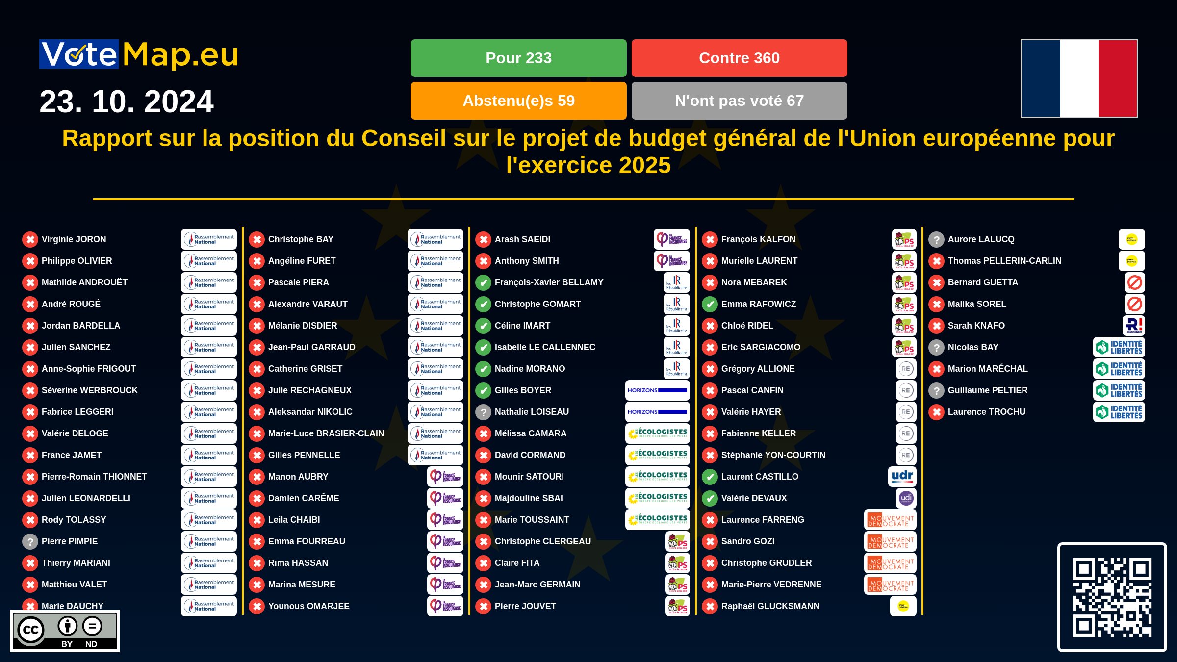 We collect and visually present data publicly available at the page of European Parliament. Votemap.eu denies any responsibility for possible inconsistencies of the data or its changes after the publication.