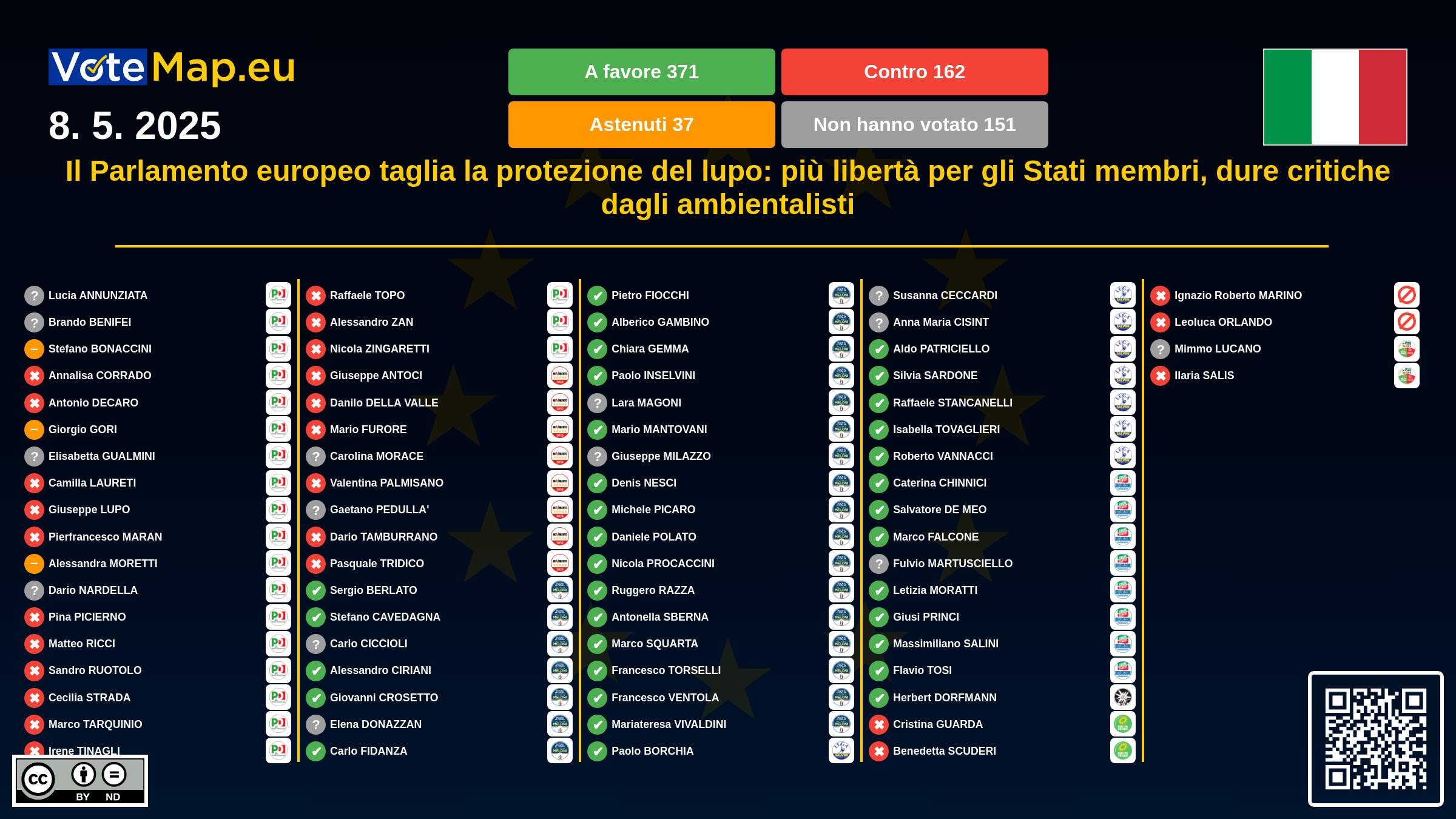 We collect and visually present data publicly available at the page of European Parliament. Votemap.eu denies any responsibility for possible inconsistencies of the data or its changes after the publication.