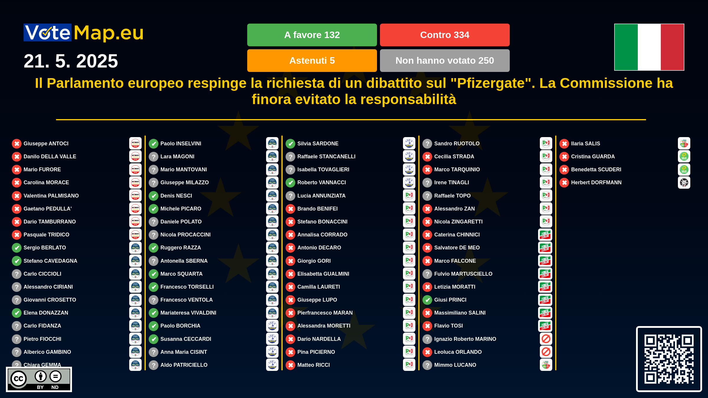 Il Parlamento europeo ha respinto a stragrande maggioranza una proposta del gruppo Patriots for Europe (PfE), che chiedeva alla Commissione europea di commentare la causa persa per le comunicazioni segrete via SMS del presidente Ursula von der Leyen nell'acquisto di vaccini contro il covid-19.
