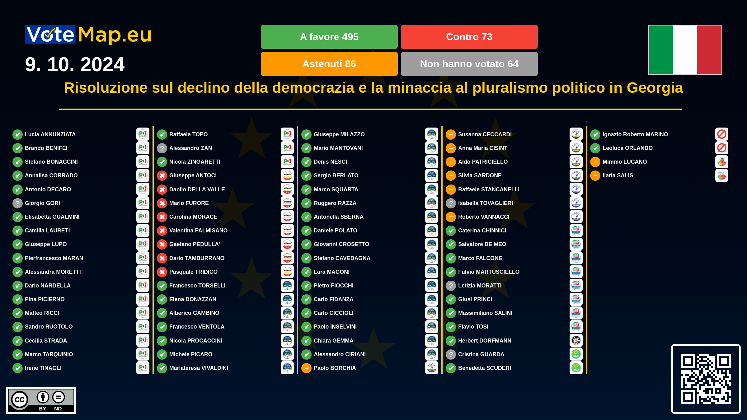Il Parlamento europeo ha espresso grave preoccupazione per gli sviluppi in Georgia e ha avvertito che il Paese si sta allontanando dai valori europei. I deputati hanno criticato le azioni repressive del governo georgiano contro l'opposizione, i media indipendenti e le ONG, che minacciano i principi democratici e lo stato di diritto.