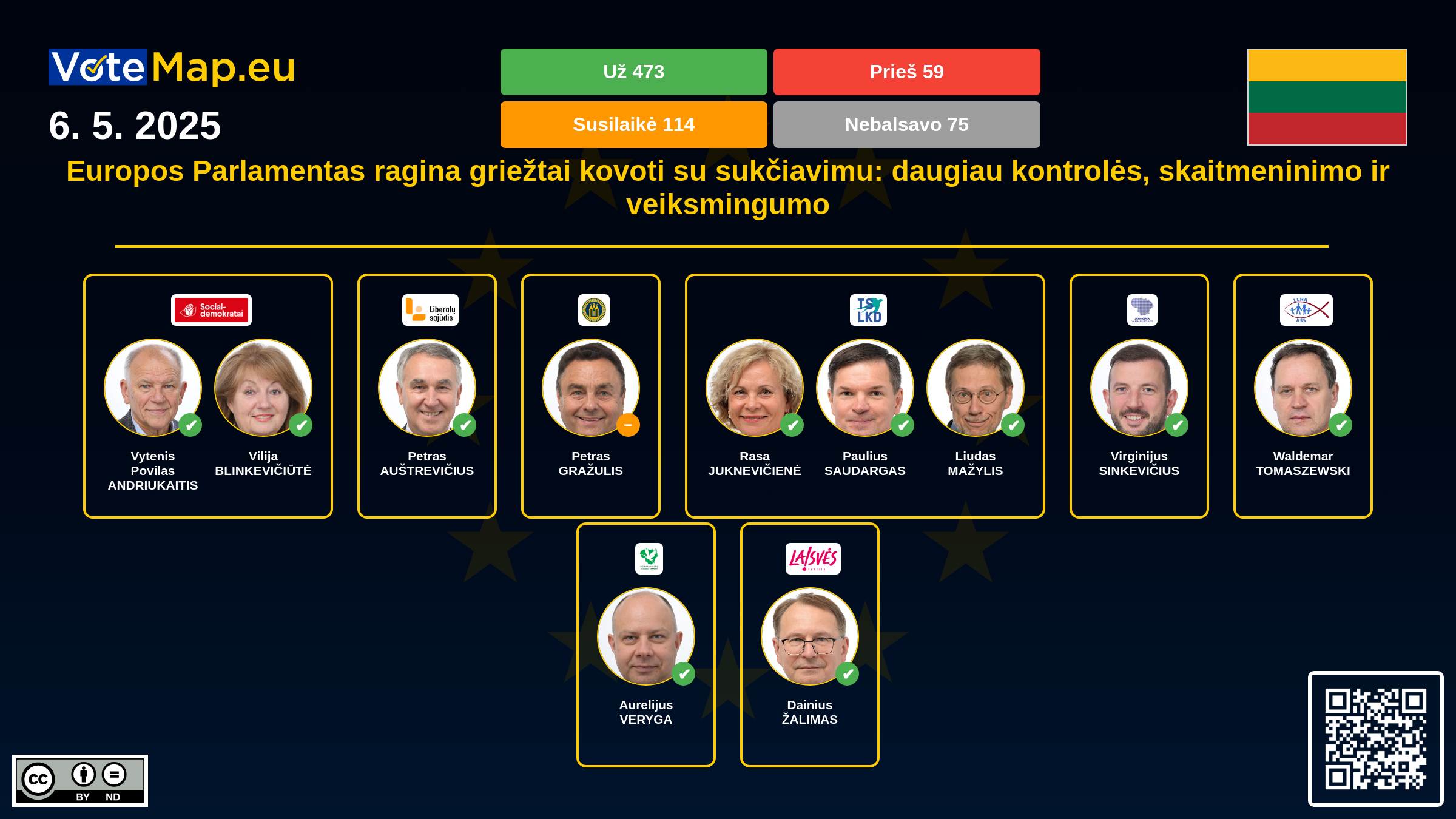 We collect and visually present data publicly available at the page of European Parliament. Votemap.eu denies any responsibility for possible inconsistencies of the data or its changes after the publication.