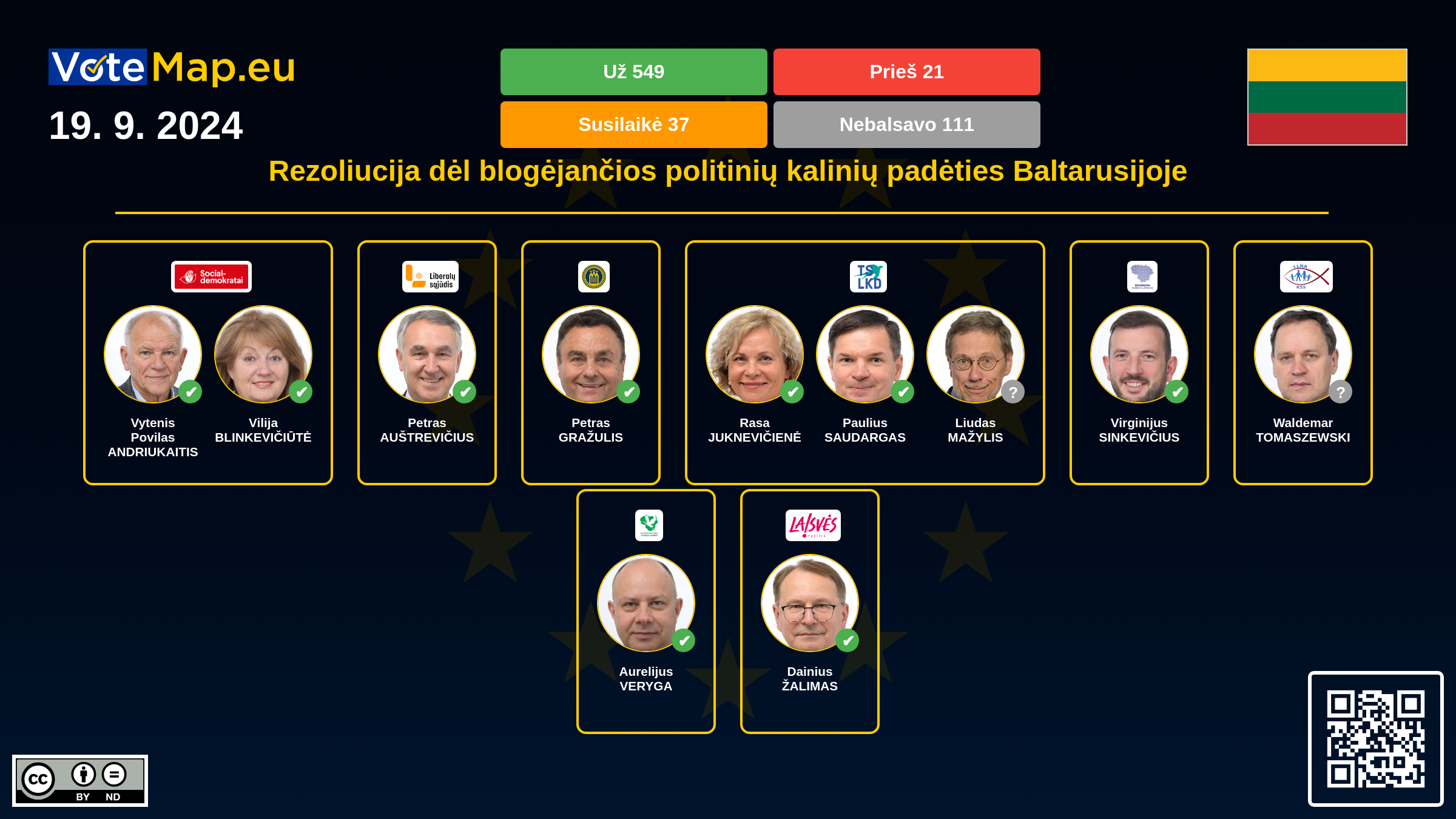 Europos Parlamentas smerkia Baltarusijos režimo nuolatines represijas prieš opoziciją, nepriklausomą žiniasklaidą ir pilietinę visuomenę. Europarlamentarai ragina toliau taikyti sankcijas režimo pareigūnams ir nedelsiant paleisti visus politinius kalinius.