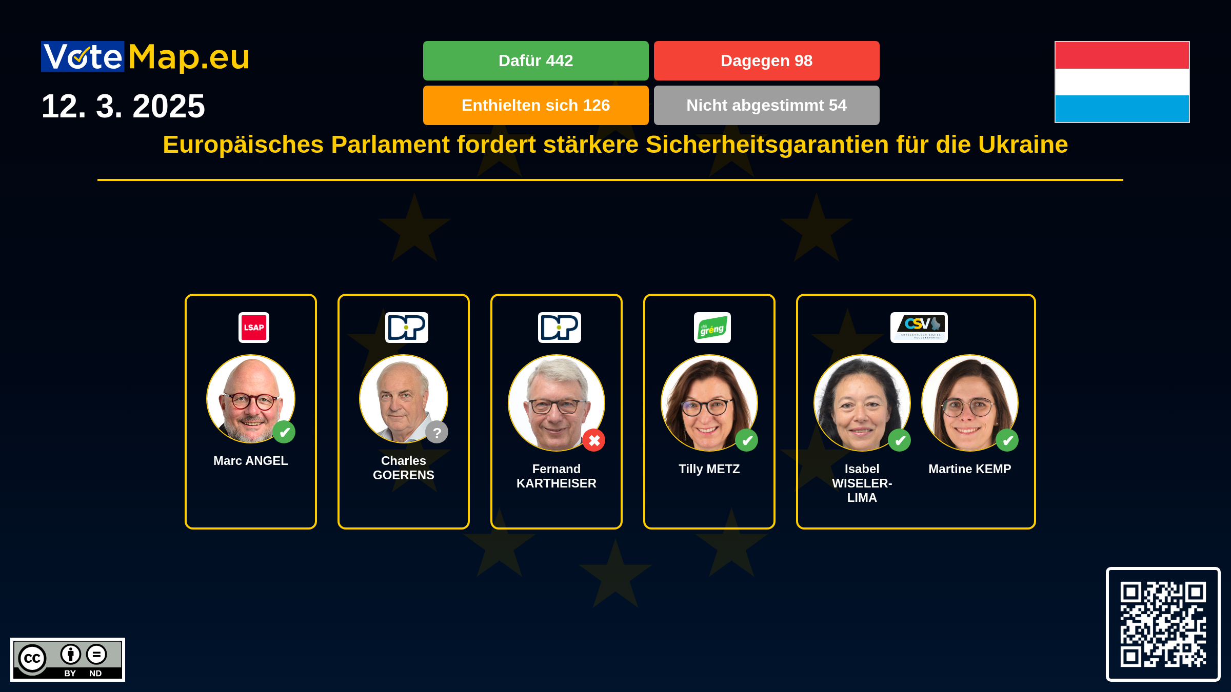 We collect and visually present data publicly available at the page of European Parliament. Votemap.eu denies any responsibility for possible inconsistencies of the data or its changes after the publication.