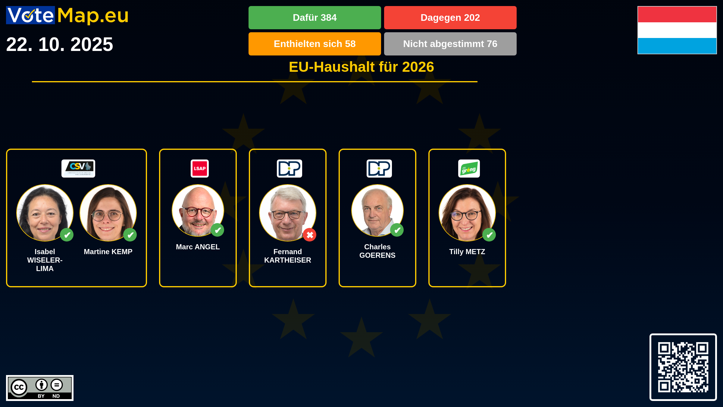 We collect and visually present data publicly available at the page of European Parliament. Votemap.eu denies any responsibility for possible inconsistencies of the data or its changes after the publication.