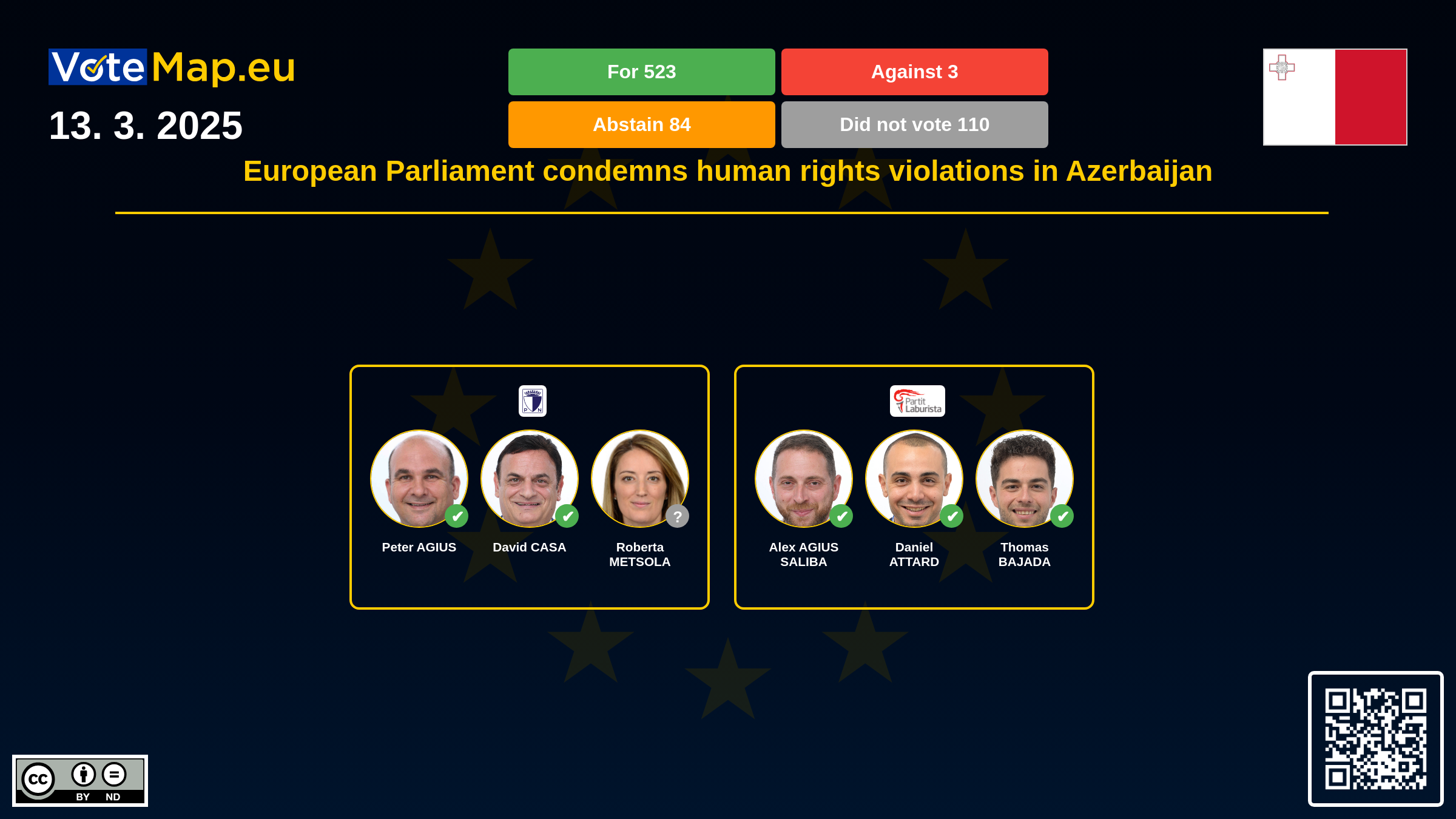 Parliament is therefore calling for the introduction of targeted sanctions against Azerbaijani officials responsible for human rights violations. It also calls for the EU-Azerbaijan strategic partnership to be suspended until the country complies with its international obligations in the field of human rights and the rule of law.