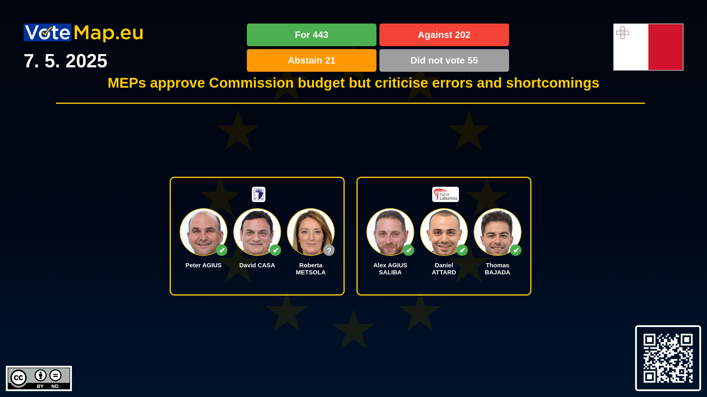 We collect and visually present data publicly available at the page of European Parliament. Votemap.eu denies any responsibility for possible inconsistencies of the data or its changes after the publication.