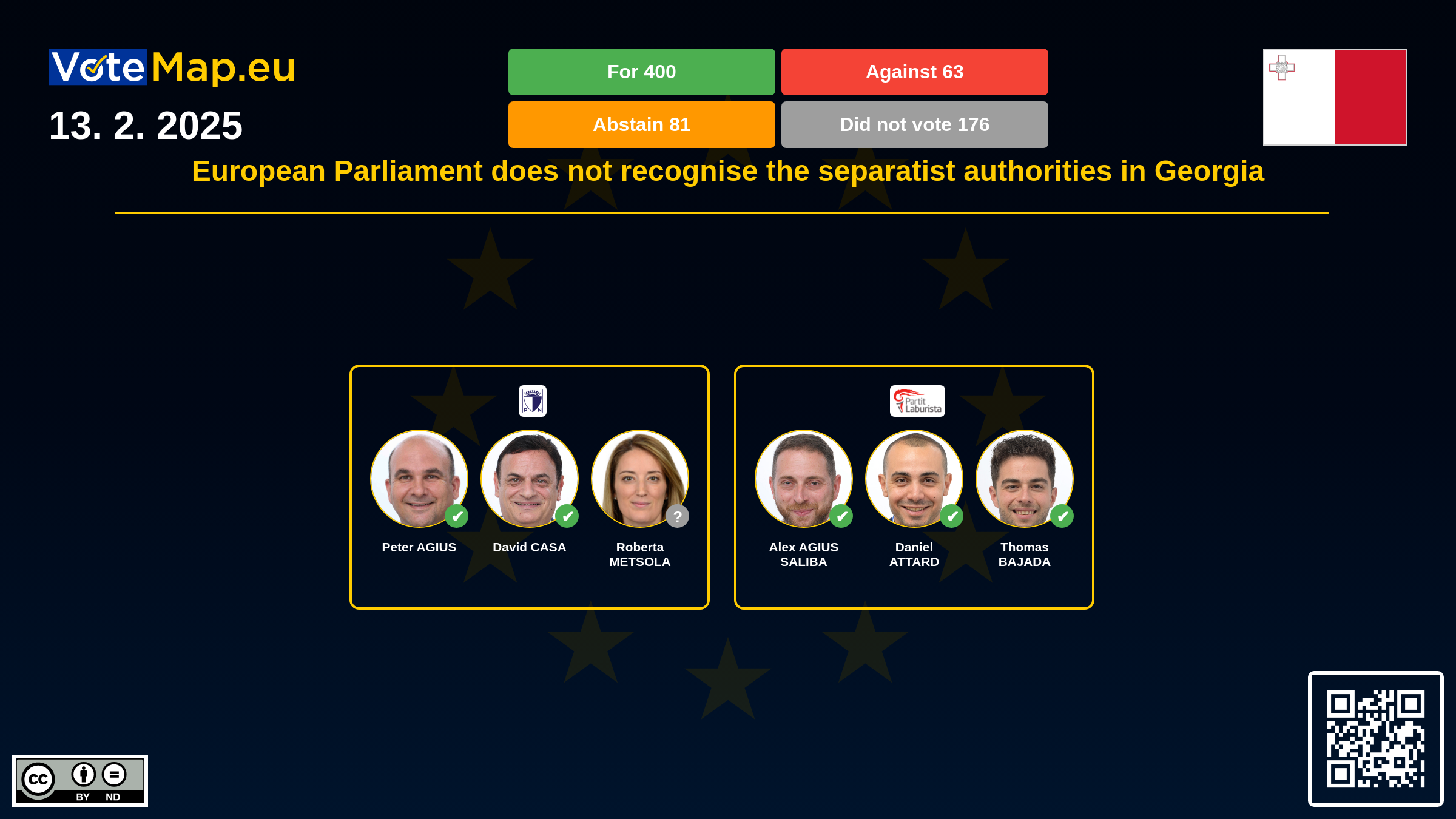 We collect and visually present data publicly available at the page of European Parliament. Votemap.eu denies any responsibility for possible inconsistencies of the data or its changes after the publication.