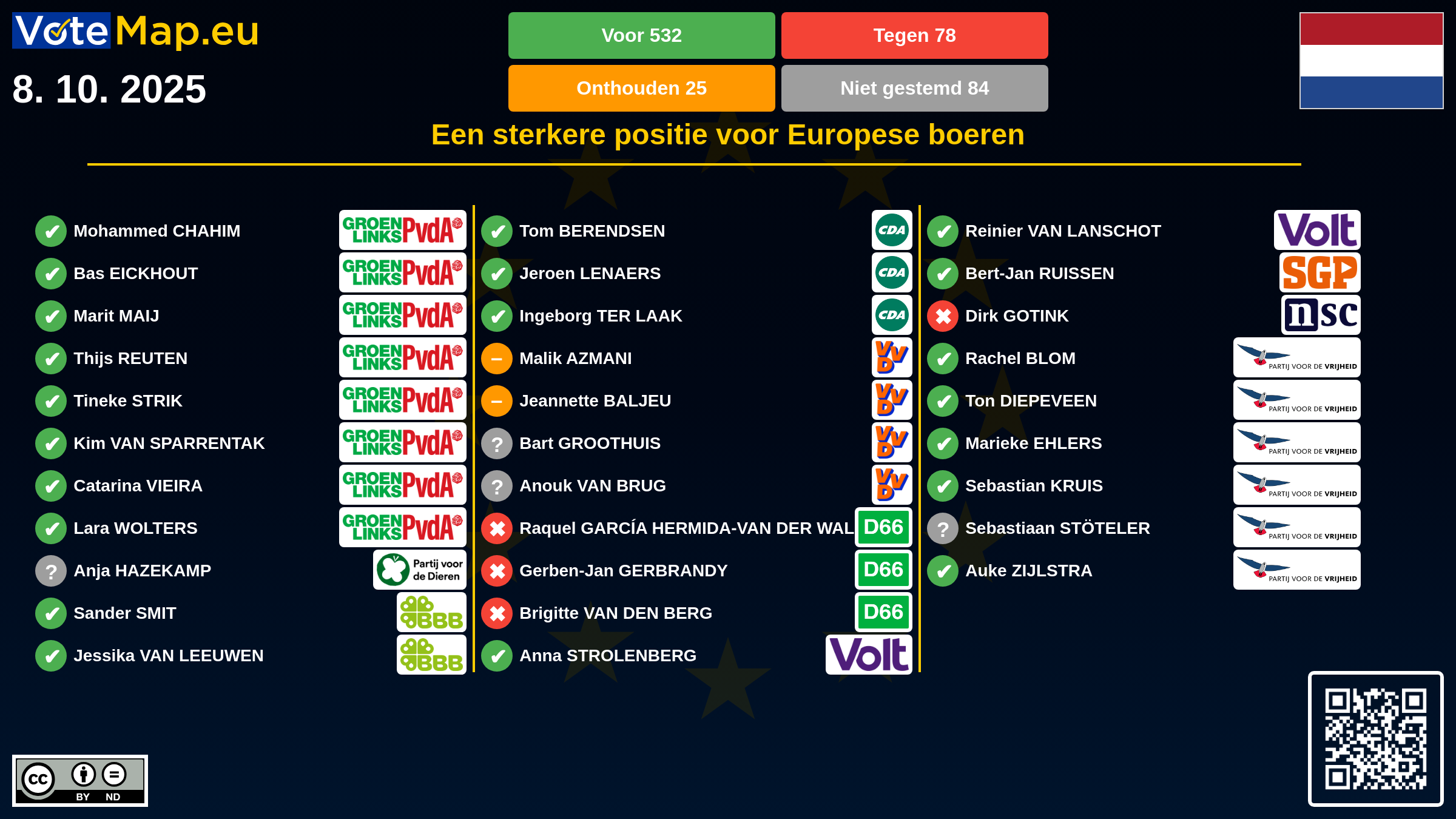 We collect and visually present data publicly available at the page of European Parliament. Votemap.eu denies any responsibility for possible inconsistencies of the data or its changes after the publication.