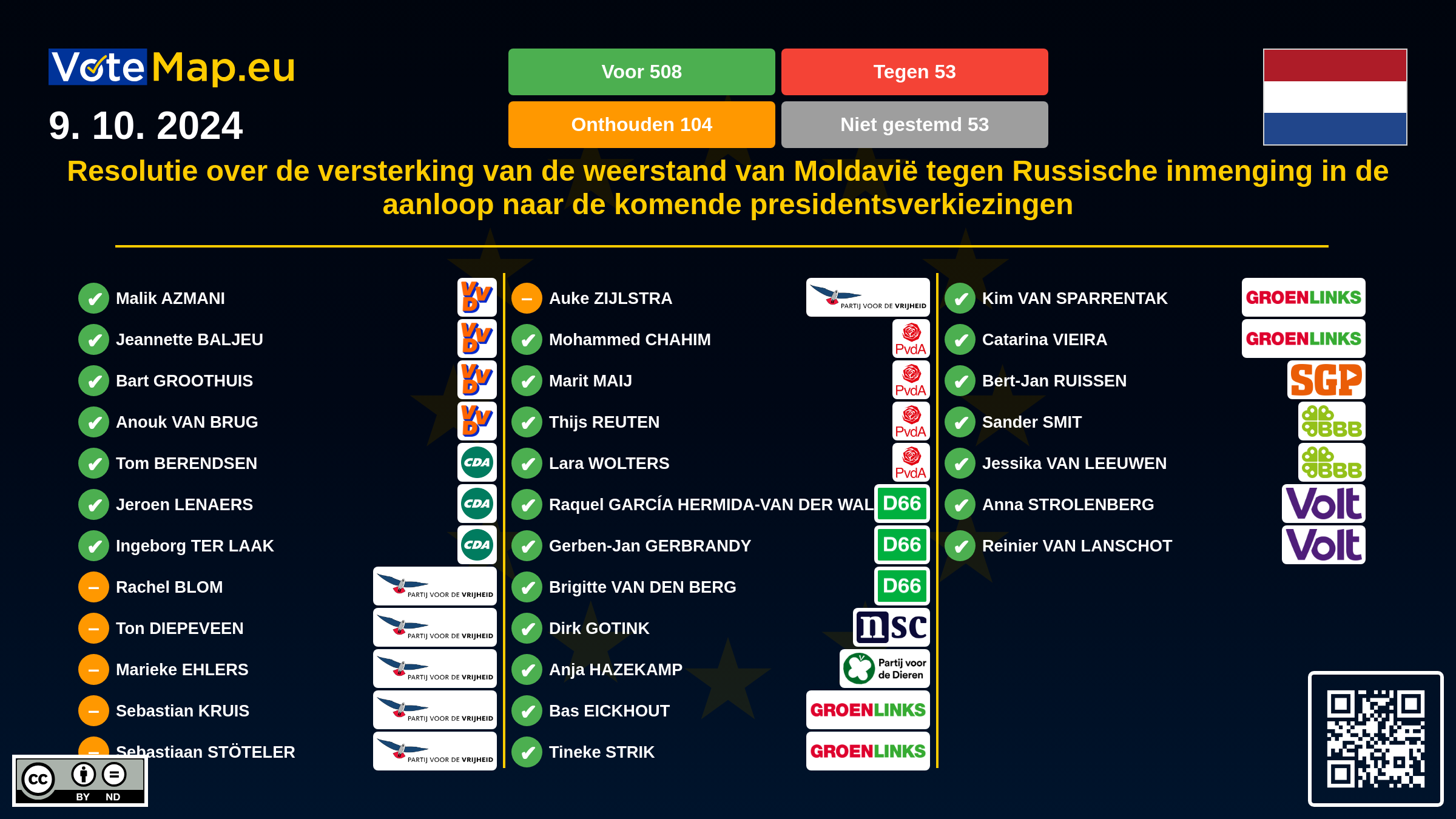 We collect and visually present data publicly available at the page of European Parliament. Votemap.eu denies any responsibility for possible inconsistencies of the data or its changes after the publication.