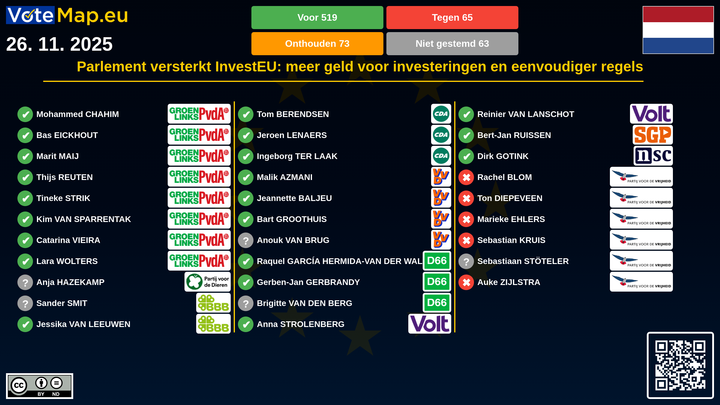 We collect and visually present data publicly available at the page of European Parliament. Votemap.eu denies any responsibility for possible inconsistencies of the data or its changes after the publication.