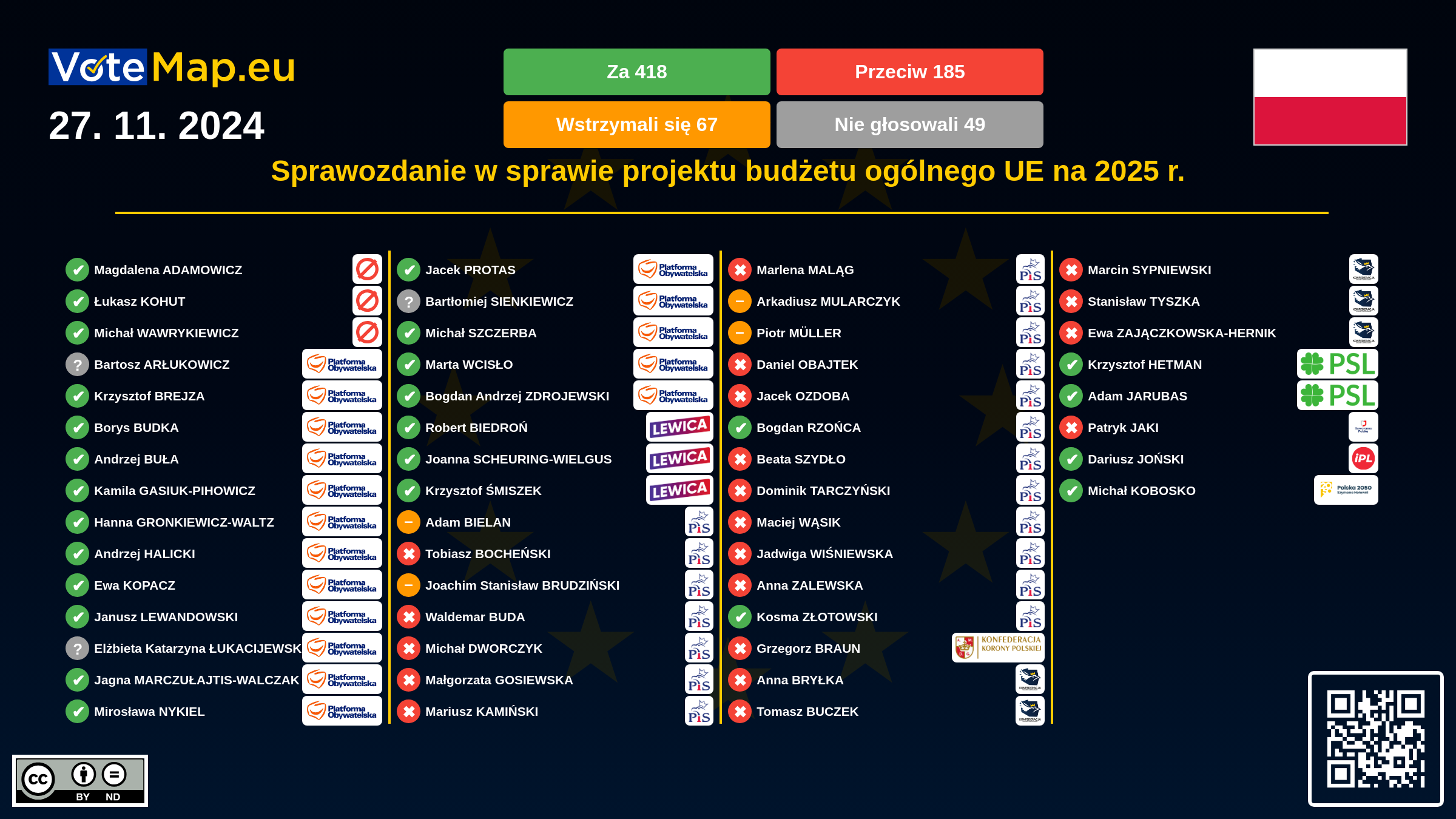 We collect and visually present data publicly available at the page of European Parliament. Votemap.eu denies any responsibility for possible inconsistencies of the data or its changes after the publication.