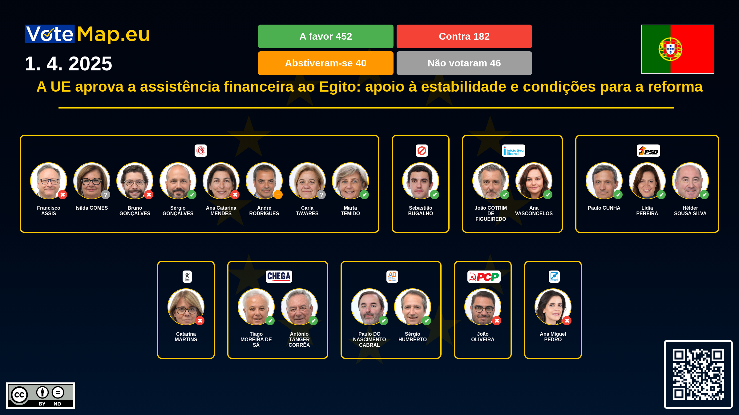A ajuda será desembolsada em três parcelas ao longo de três anos, cada uma dependente de reformas económicas, da redução da dívida e de uma gestão mais transparente. Os eurodeputados sublinharam ainda que o respeito pelos direitos humanos é fundamental e que, se o Egito não cumprir os requisitos acordados, os pagamentos poderão ser suspensos.