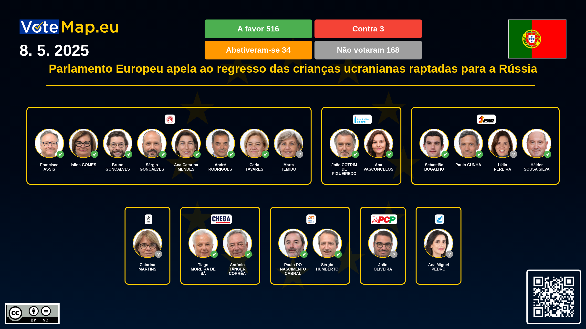 O Parlamento Europeu apela à extensão das sanções contra as pessoas e instituições envolvidas nestas práticas e recorda que o Tribunal Penal Internacional já emitiu mandados de captura contra Vladimir Putin e Maria Lvova-Belova.
