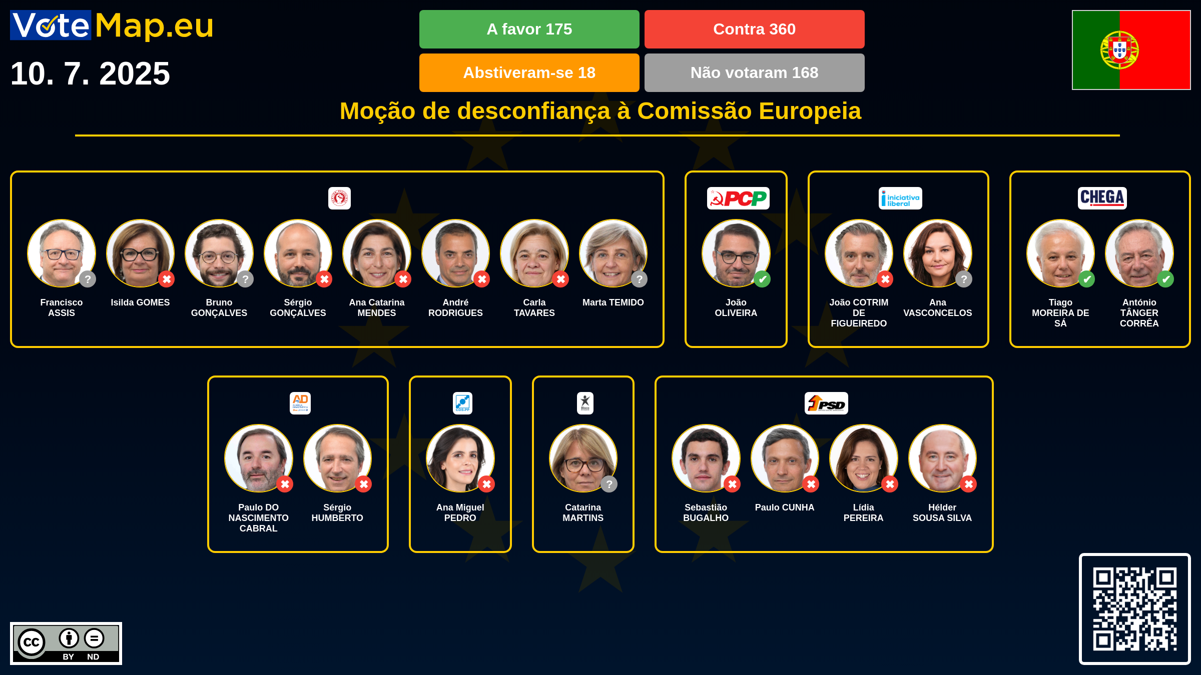 A tentativa de destituir a Comissão liderada por Ursula von der Leyen esbarrou numa barreira: apenas 175 dos 720 eurodeputados votaram a favor da moção, muito abaixo da maioria de dois terços necessária. A maioria dos eurodeputados considera que a proposta não é credível, embora as críticas à Comissão continuem a ser feitas.
