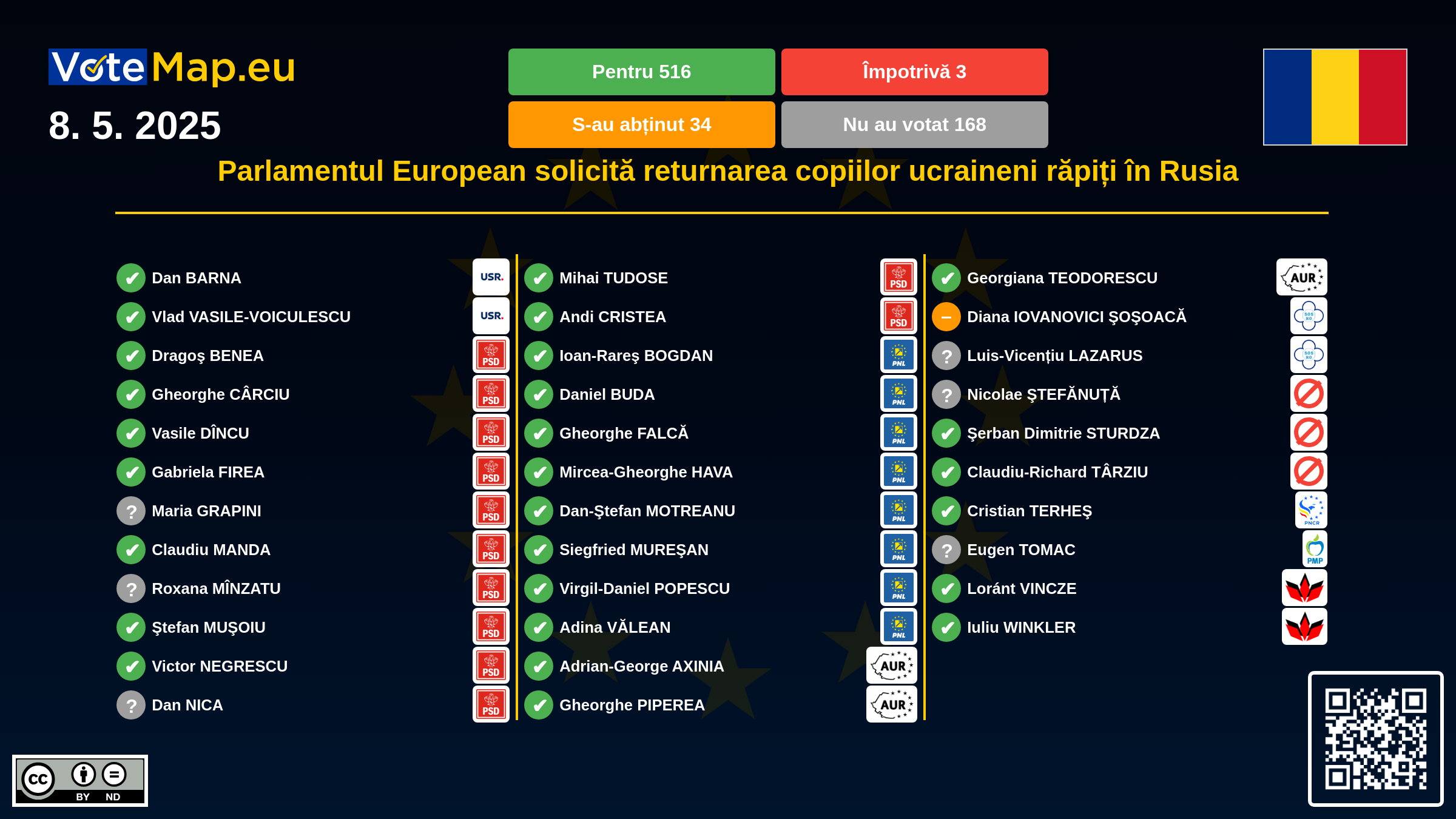 Parlamentul European a condamnat ferm răpirea sistematică a copiilor ucraineni către Rusia și Belarus. Parlamentul European solicită întoarcerea imediată a acestora, cooperarea organizațiilor internaționale și tragerea la răspundere penală a autorilor.