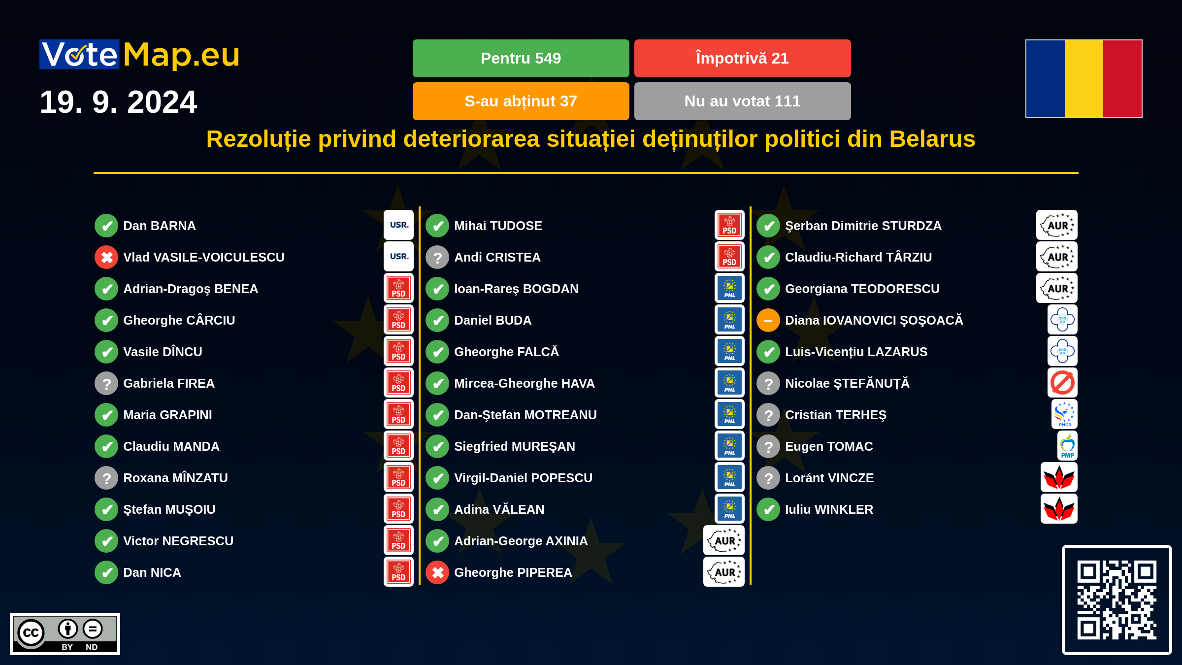 We collect and visually present data publicly available at the page of European Parliament. Votemap.eu denies any responsibility for possible inconsistencies of the data or its changes after the publication.