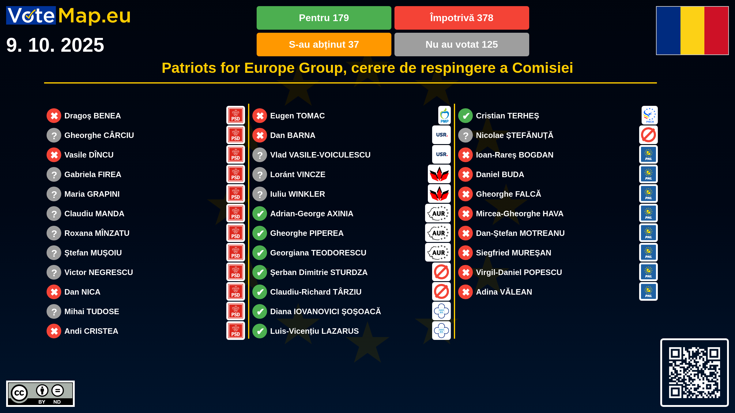 We collect and visually present data publicly available at the page of European Parliament. Votemap.eu denies any responsibility for possible inconsistencies of the data or its changes after the publication.