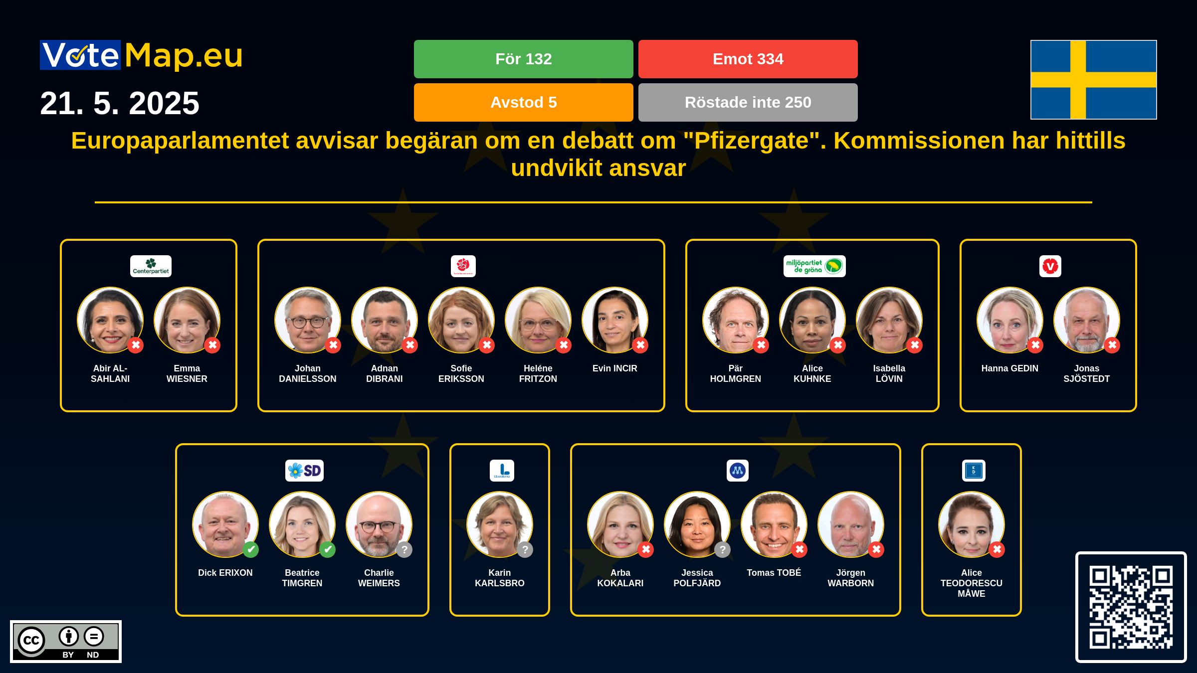 Europaparlamentet har med överväldigande majoritet avvisat ett förslag från gruppen Patriots for Europe (PfE), som krävde att EU-kommissionen skulle kommentera den förlorade rättegången om president Ursula von der Leyens hemliga sms-kommunikation i samband med inköp av vaccin mot covid-19.